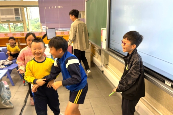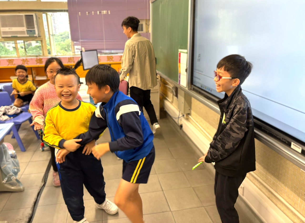 班主任時間,老師精心準備有趣的互動遊戲,全班同學玩成一片,歡笑聲響徹教室。