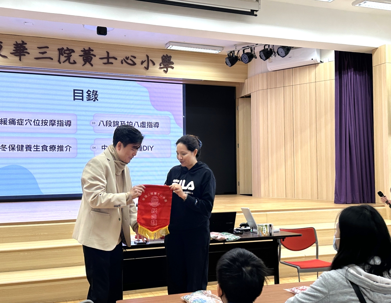 醫師分享季節保健湯水配方時,家長紛紛舉起手機記錄,展現對家庭健康的重視。隨後的全場八段錦練習中,校長、副校長及主任全程陪同參與,與爺爺奶奶、父母孩子一起舒展身體。跨代共學的溫暖畫面,令人感動。