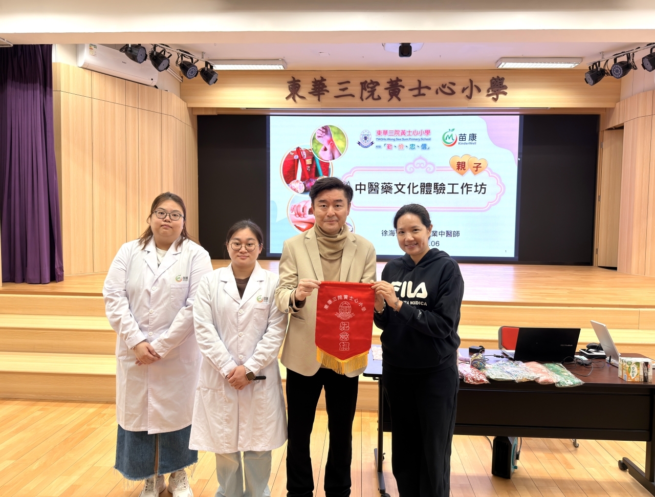 學校舉辦「中醫藥文化親子工作坊」,特邀「苗康中醫生活體驗館」專業團隊到校,以生動互動形式,帶領多個家庭深入體驗中醫養生智慧。從穴位保健到湯膳食療,從八段錦舒展到艾草手作,洋溢溫馨歡樂的學習氣氛,更促進了親子間的親密互動與跨代對話。