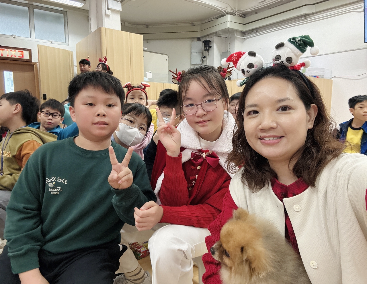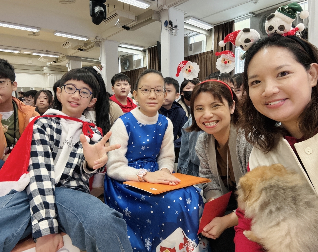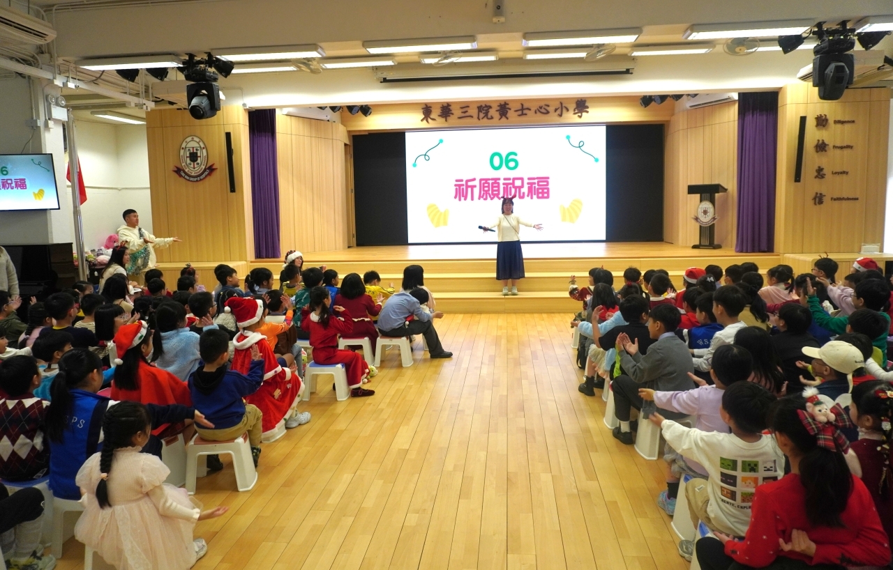 課室化身歡樂小派對!同學與老師一起玩互動遊戲,合作無間,歡呼不斷;彼此分享手作美食,更準備了精心包裝的小禮物互相交換,蘊藏著真摯祝福。