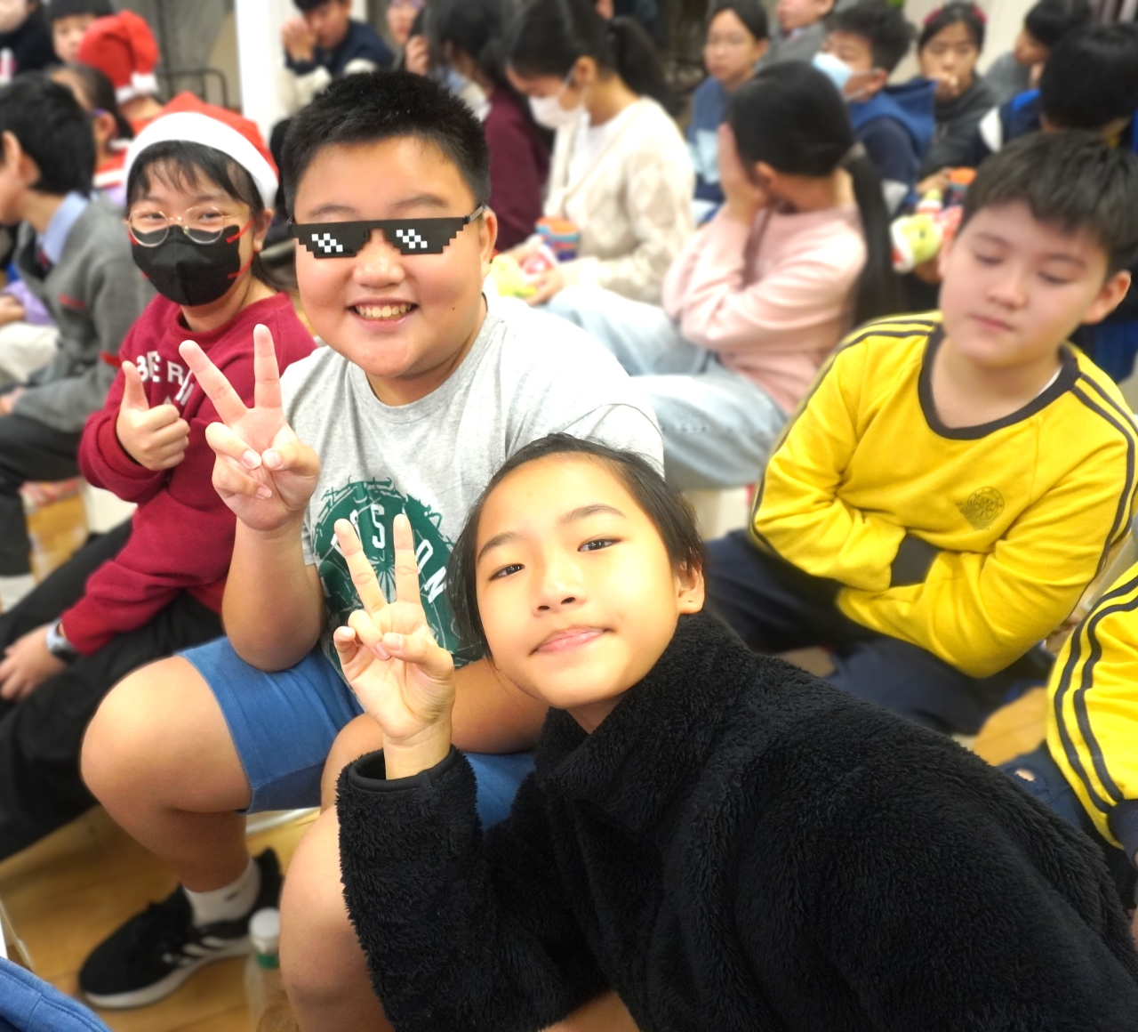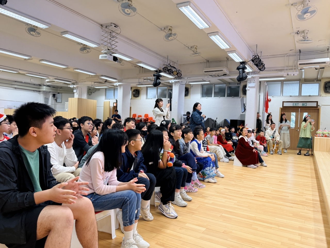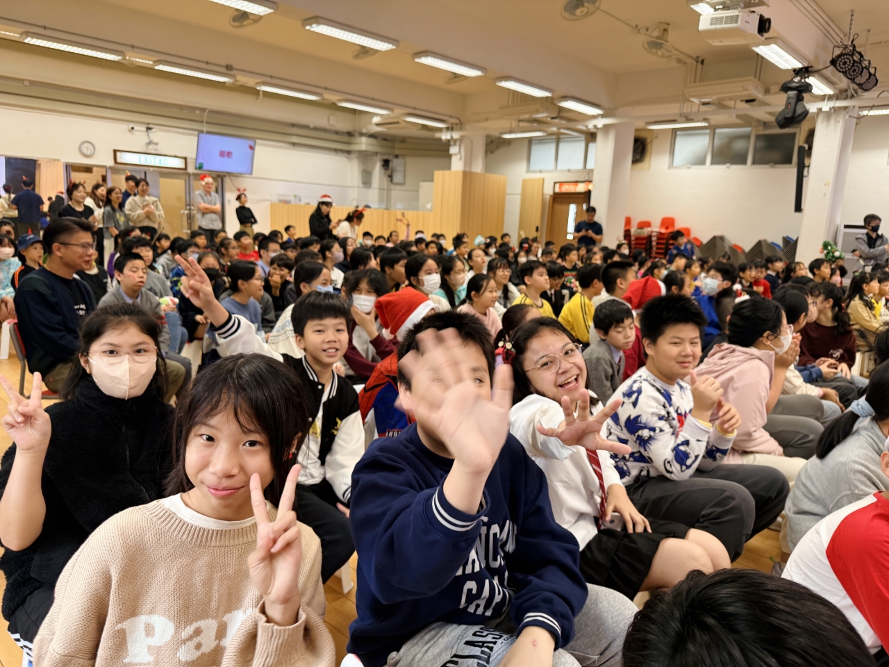 課室化身歡樂小派對!同學與老師一起玩互動遊戲,合作無間,歡呼不斷;彼此分享手作美食,更準備了精心包裝的小禮物互相交換,蘊藏著真摯祝福。