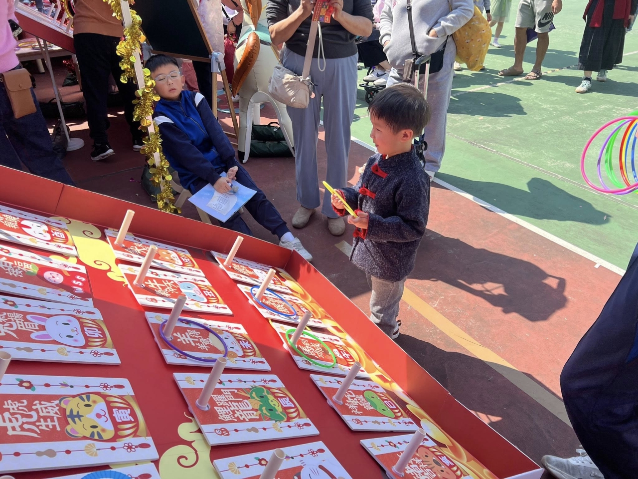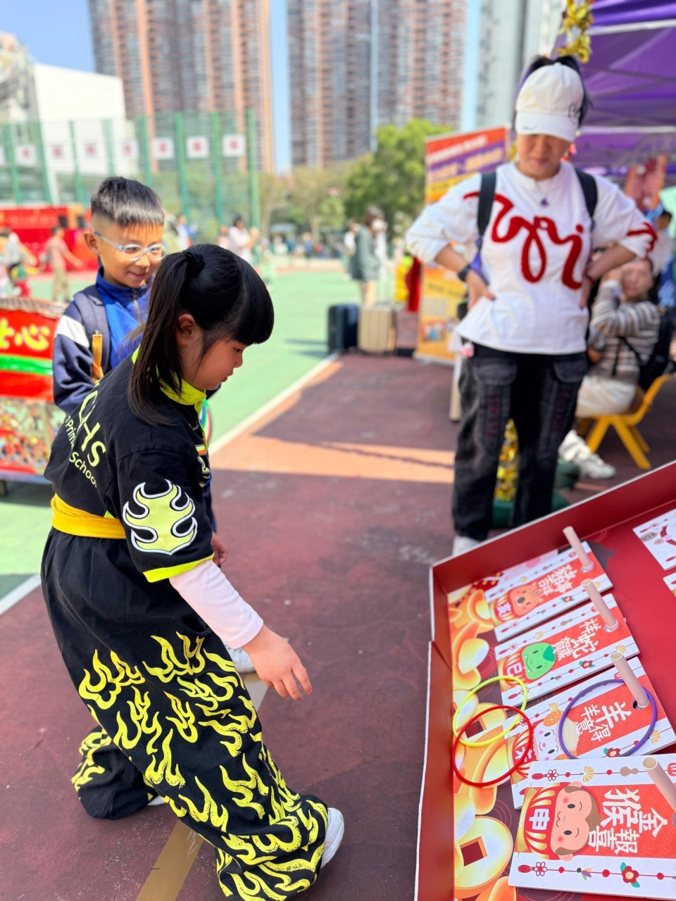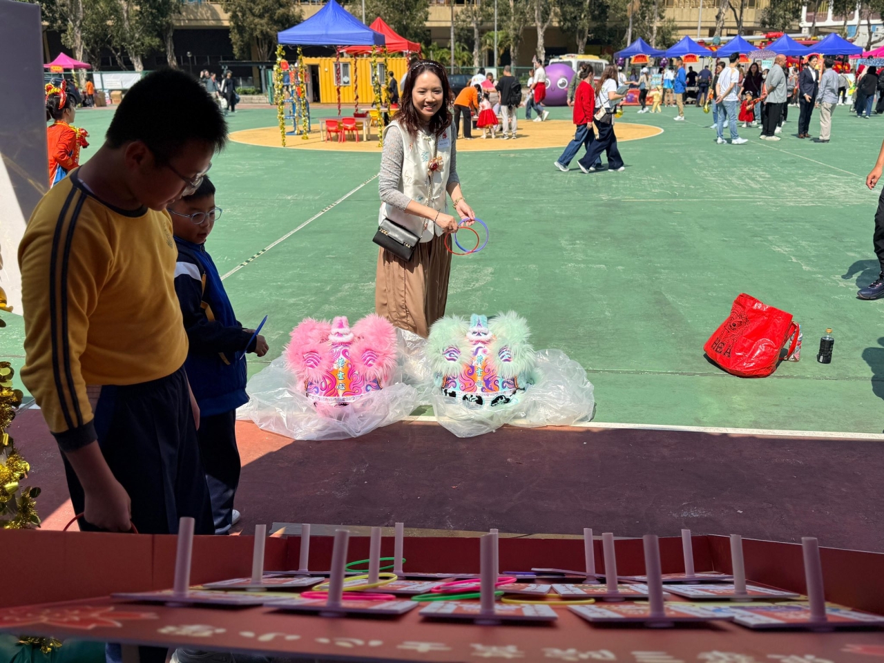 同學主持攤位遊戲,小朋友拋圈、集印仔
