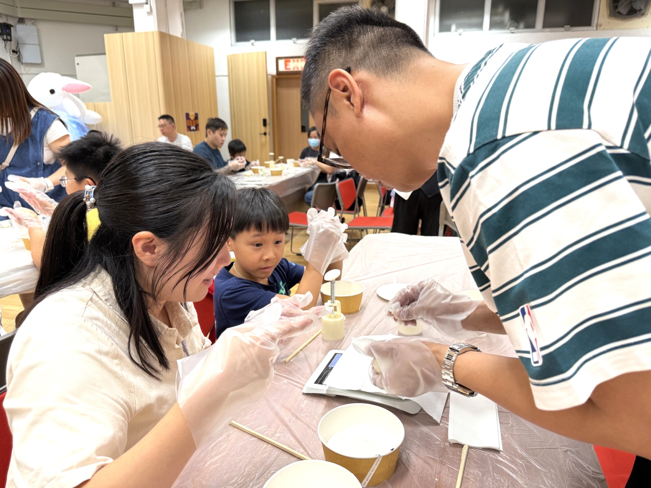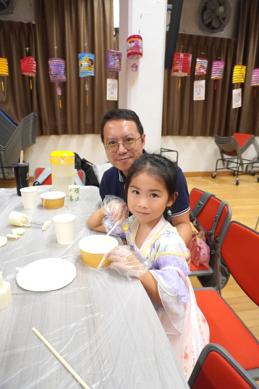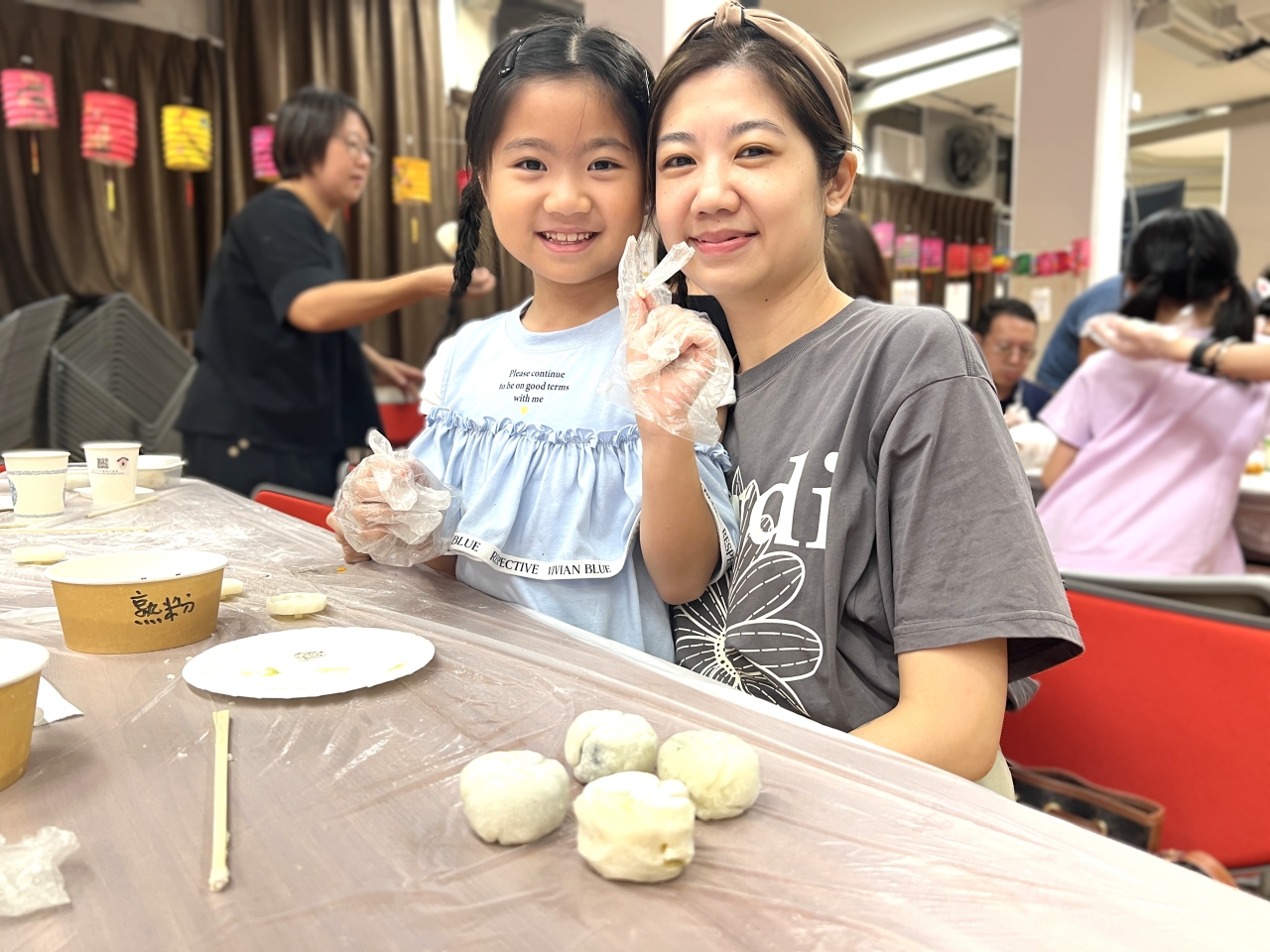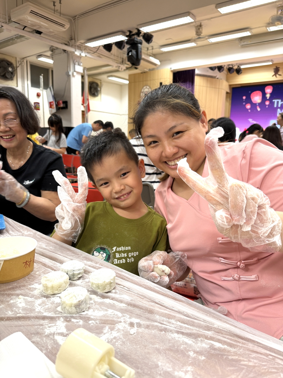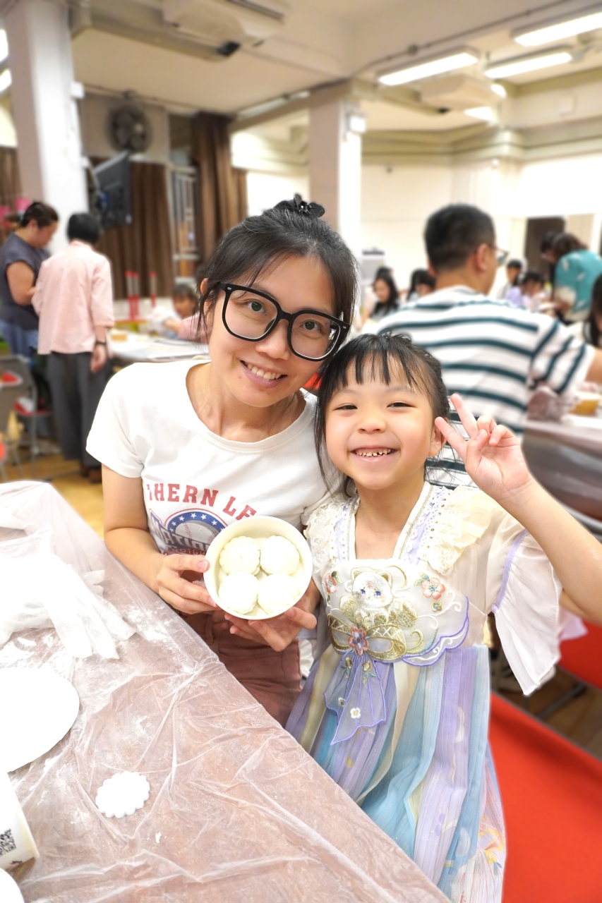最受歡迎的絕對是親子製作冰皮月餅的環節!在家長義工耐心指導下,👨👩👧👦爸爸媽媽、爺爺奶奶和孩子一起動手,揉麵團、包餡料、壓模子,忙得好開心。一個個小巧可愛的月餅從模具裡「誕生」時,大人小孩的臉上洋溢自豪的笑臉,畫面真的非常動人!