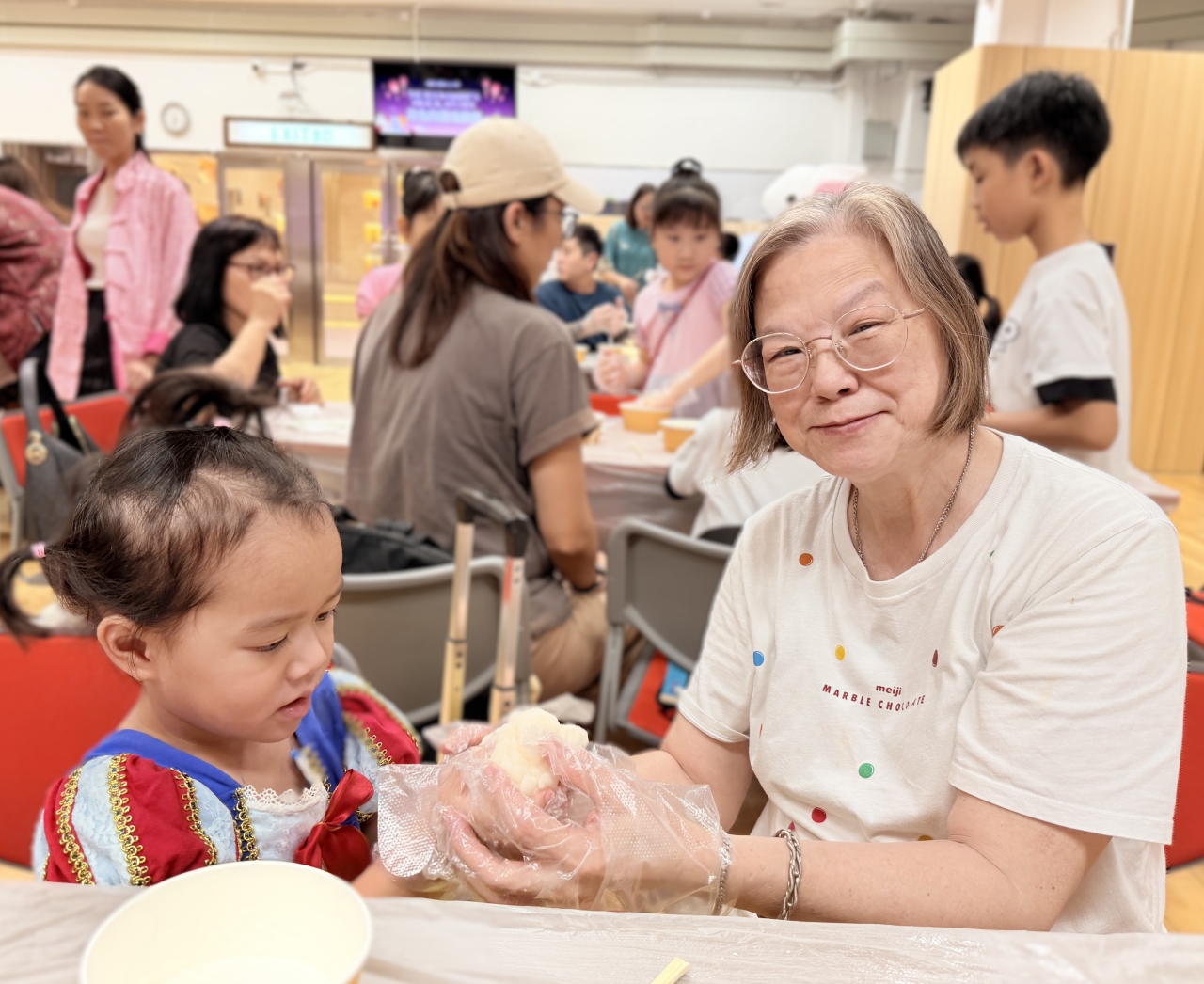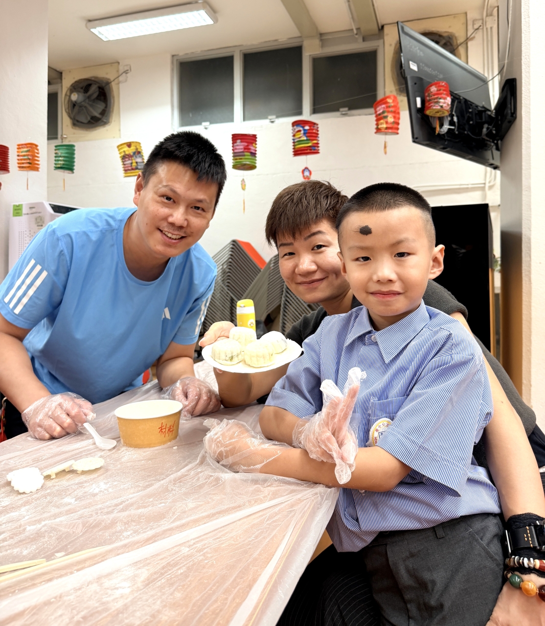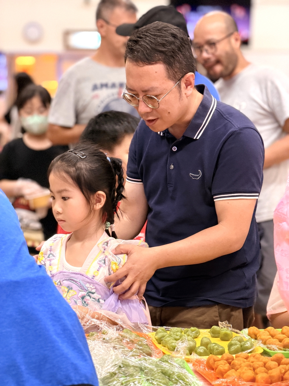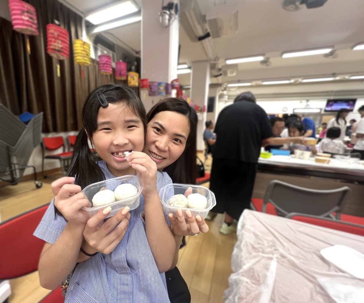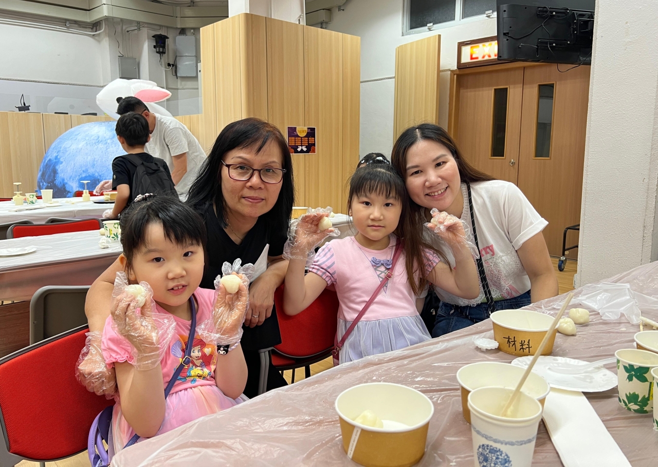 最受歡迎的絕對是親子製作冰皮月餅的環節!在家長義工耐心指導下,👨👩👧👦爸爸媽媽、爺爺奶奶和孩子一起動手,揉麵團、包餡料、壓模子,忙得好開心。一個個小巧可愛的月餅從模具裡「誕生」時,大人小孩的臉上洋溢自豪的笑臉,畫面真的非常動人!