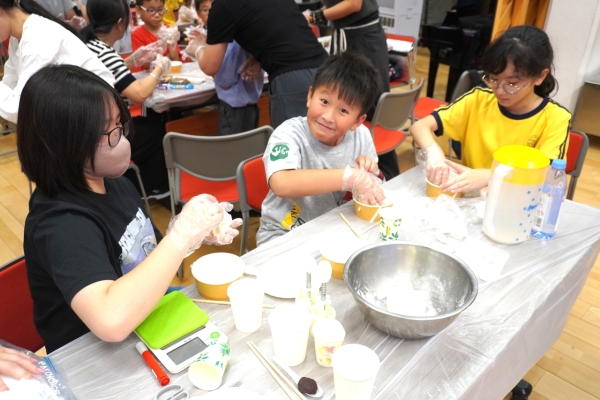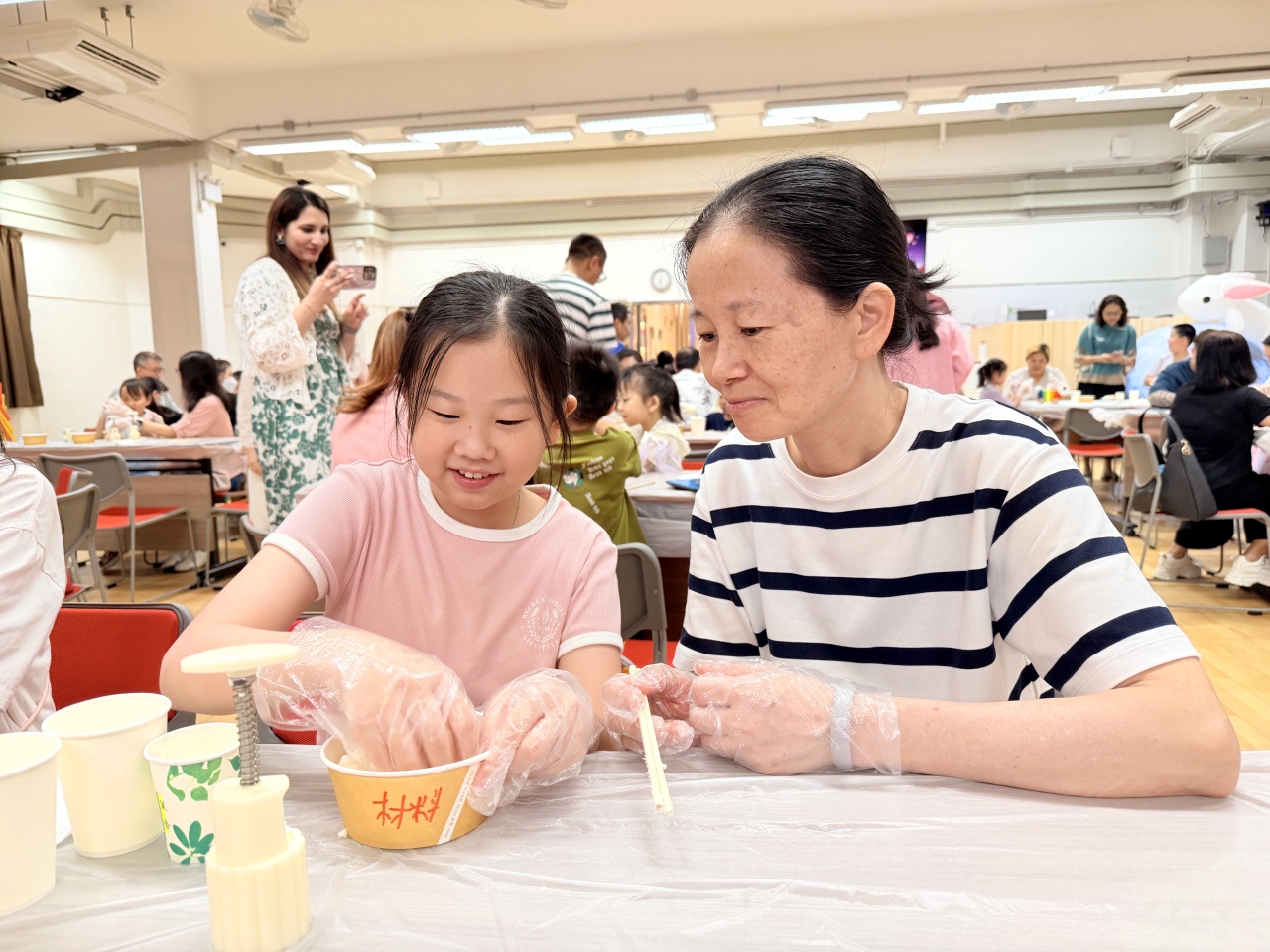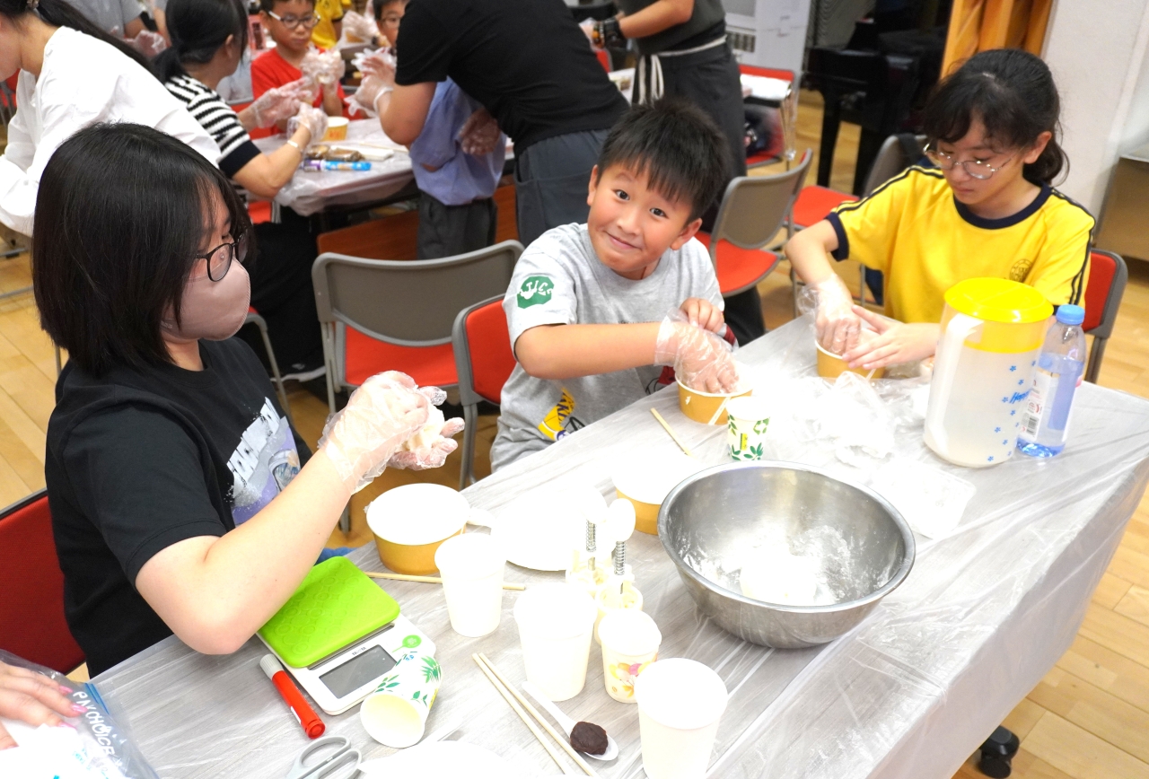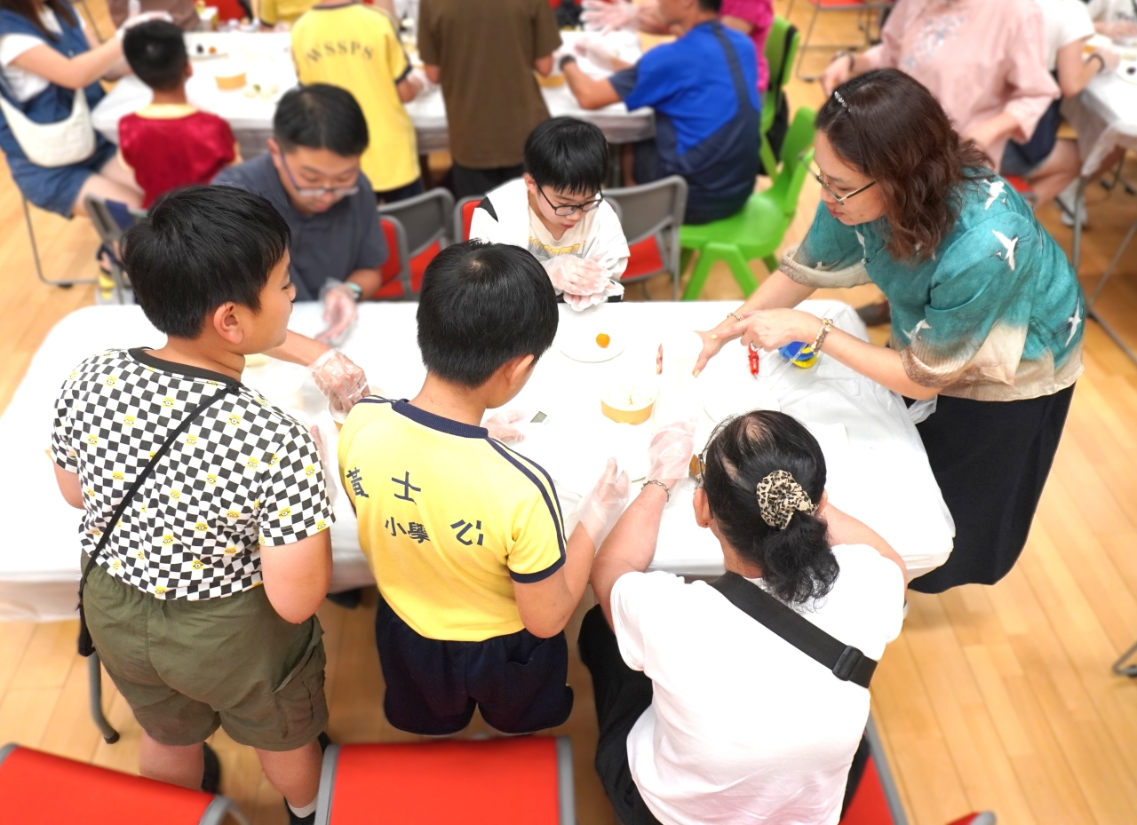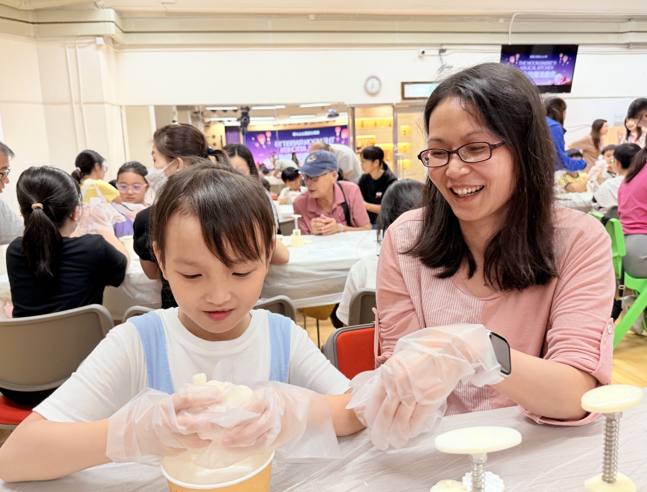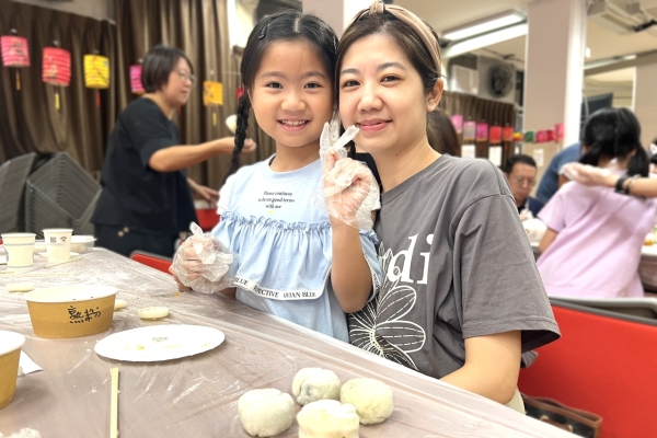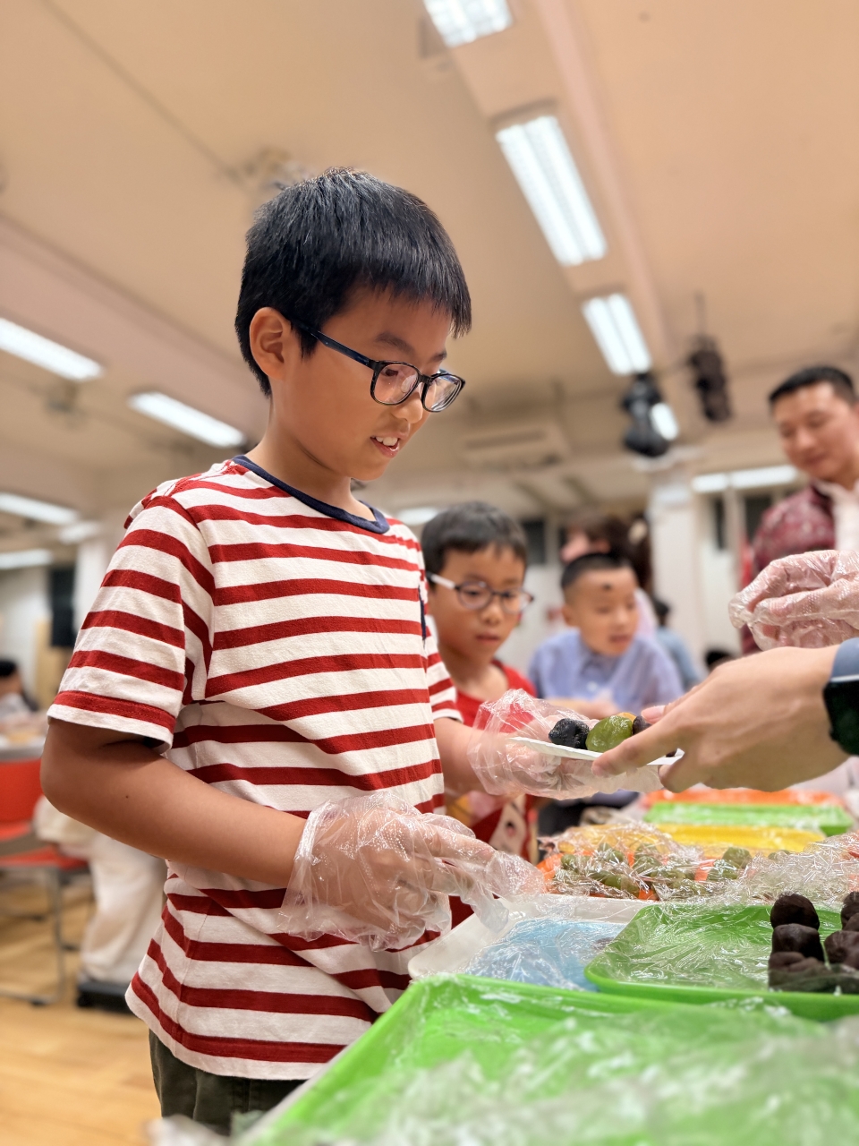最受歡迎的絕對是親子製作冰皮月餅的環節!在家長義工耐心指導下,👨👩👧👦爸爸媽媽、爺爺奶奶和孩子一起動手,揉麵團、包餡料、壓模子,忙得好開心。一個個小巧可愛的月餅從模具裡「誕生」時,大人小孩的臉上洋溢自豪的笑臉,畫面真的非常動人!