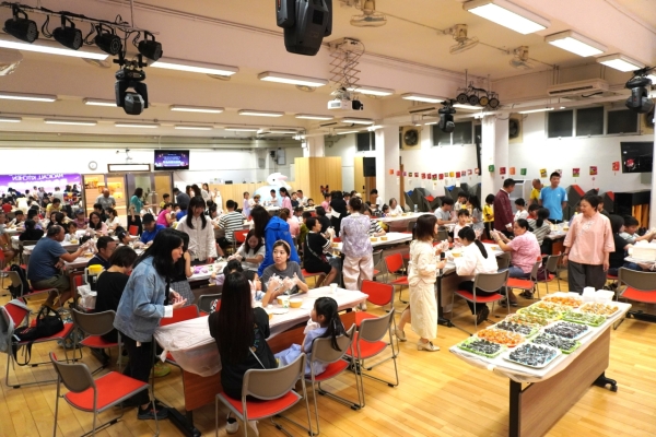 禮堂掛起了燈籠,充滿過節的氣氛。大家動腦猜燈謎,不時就爆出「啊!我猜到了!」的歡呼聲。大家一邊吃著香甜的水果🍊🍐,一邊聊天、賞月,相機的喀嚓聲不停,拍下了一張張幸福的笑臉。🥰