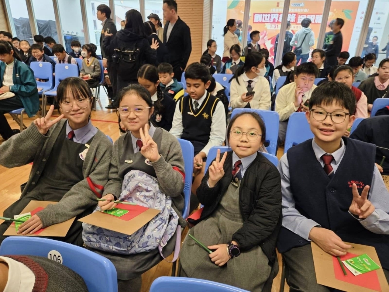 日前他們參與了 「千人同書福」活動,與多位政府官員、東華三院應屆主席、校長、老師及學生一起揮毫,共創吉祥福字,傳遞新春祝福