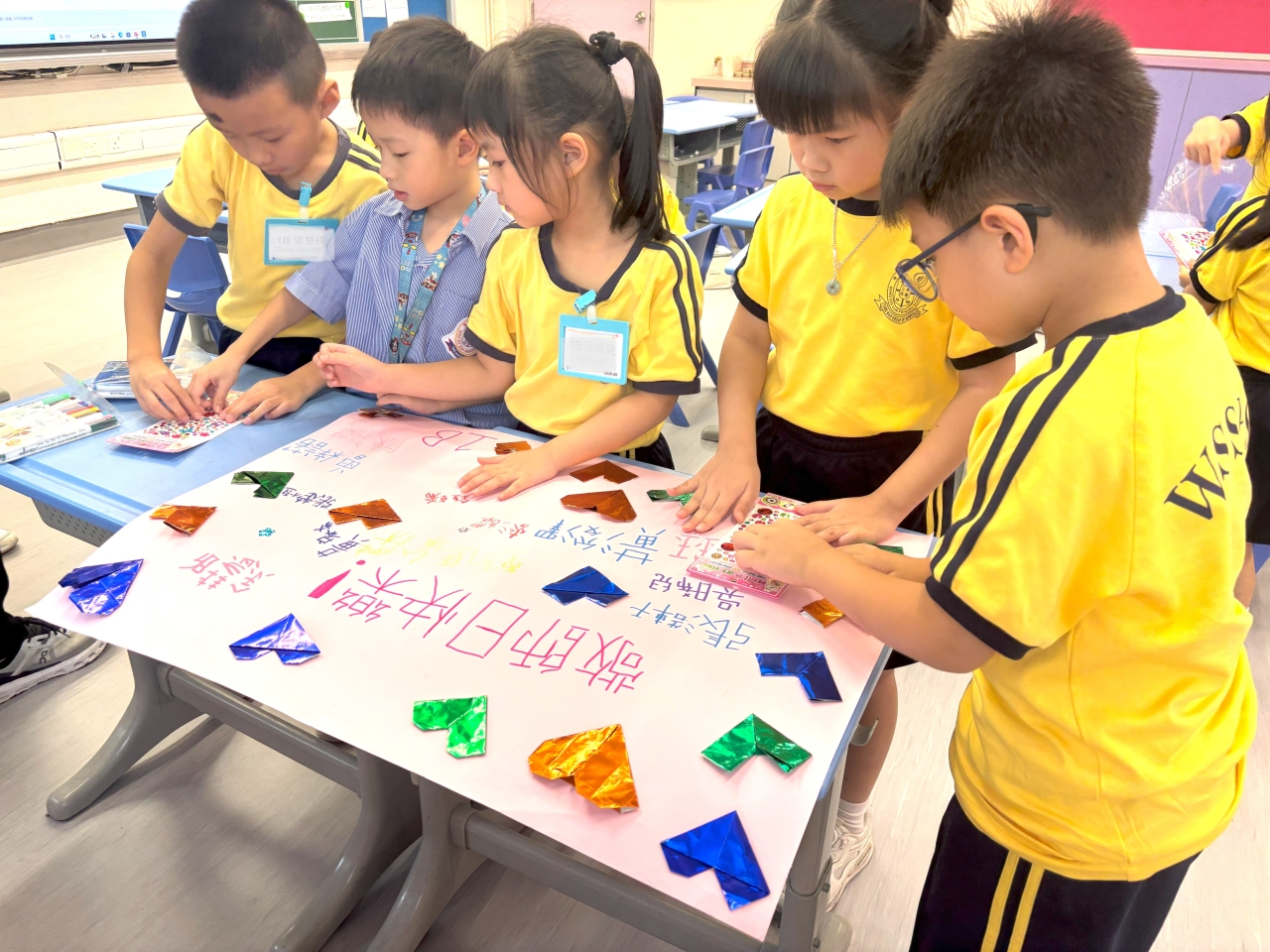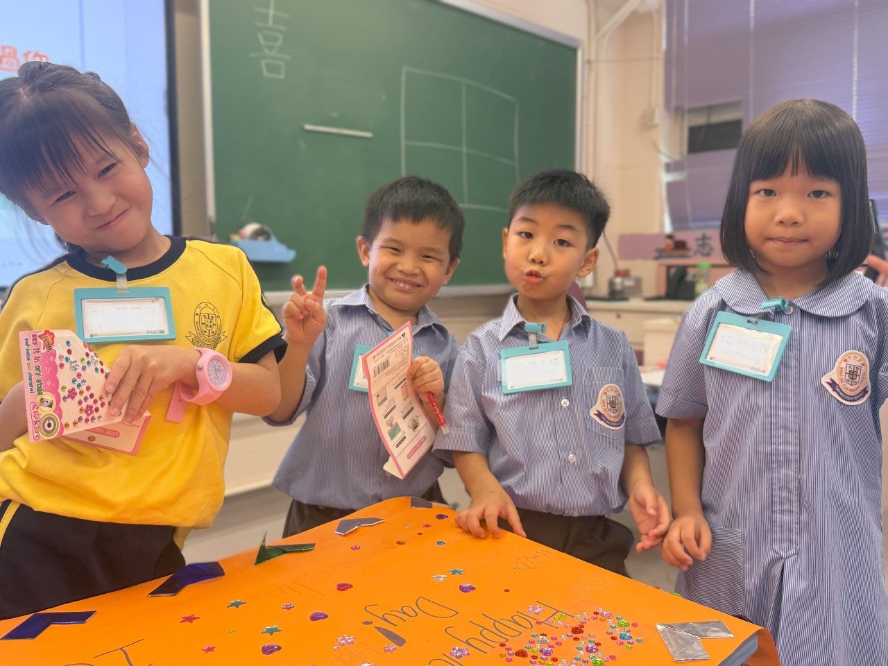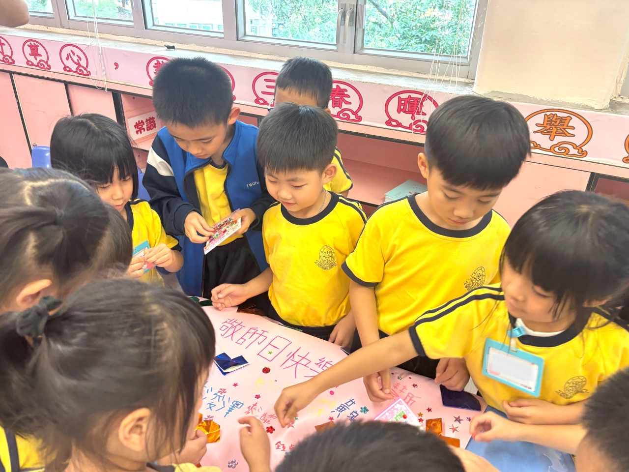 低年級的同學認真合作,高年級的學長發揮創意與團結力量,一起設計了獨一無二的心意卡和感謝信