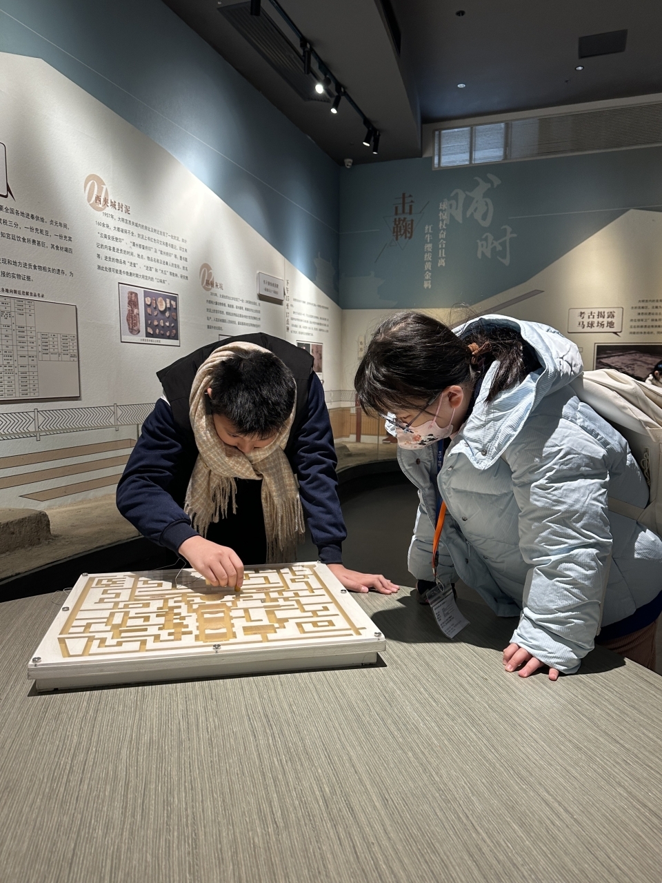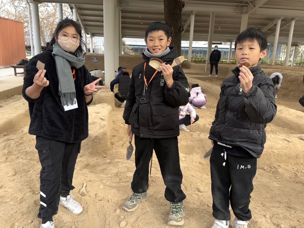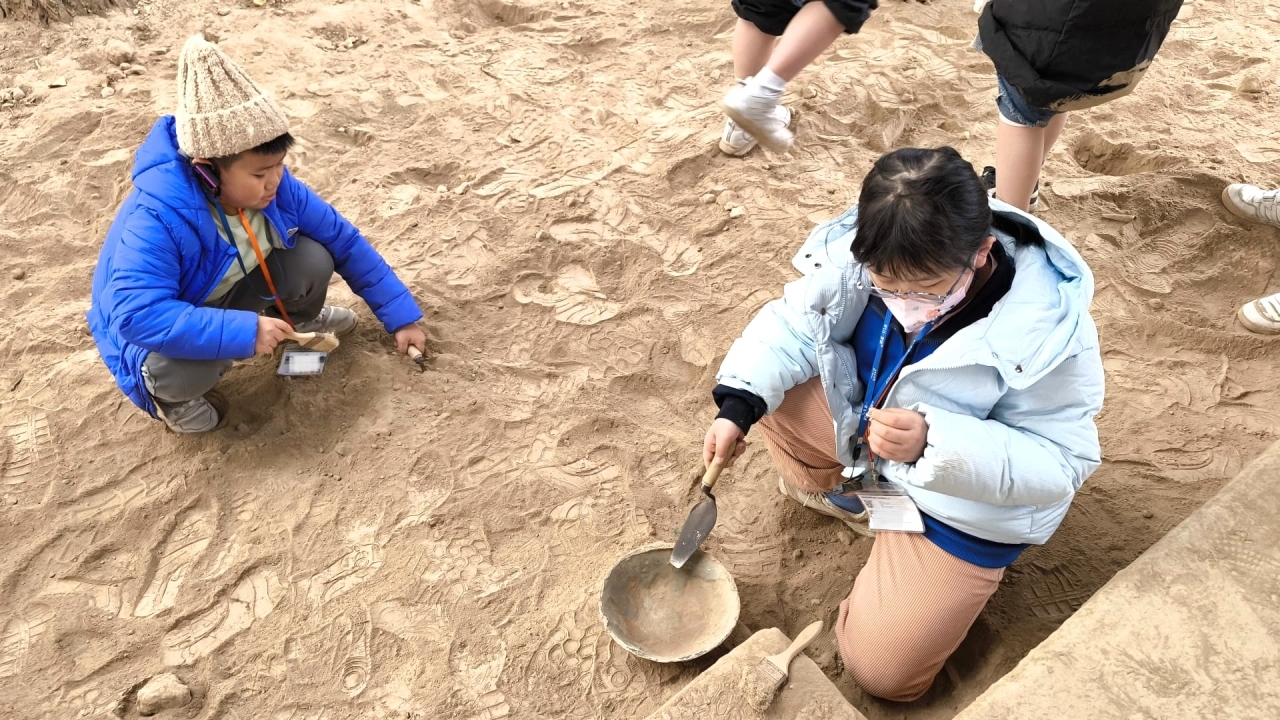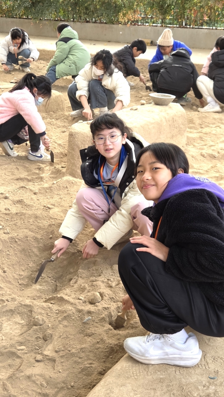 在導師的指導下,我們進入模擬考古探方,親手使用工具進行挖掘。挖掘的過程中,我們找到了古銅錢