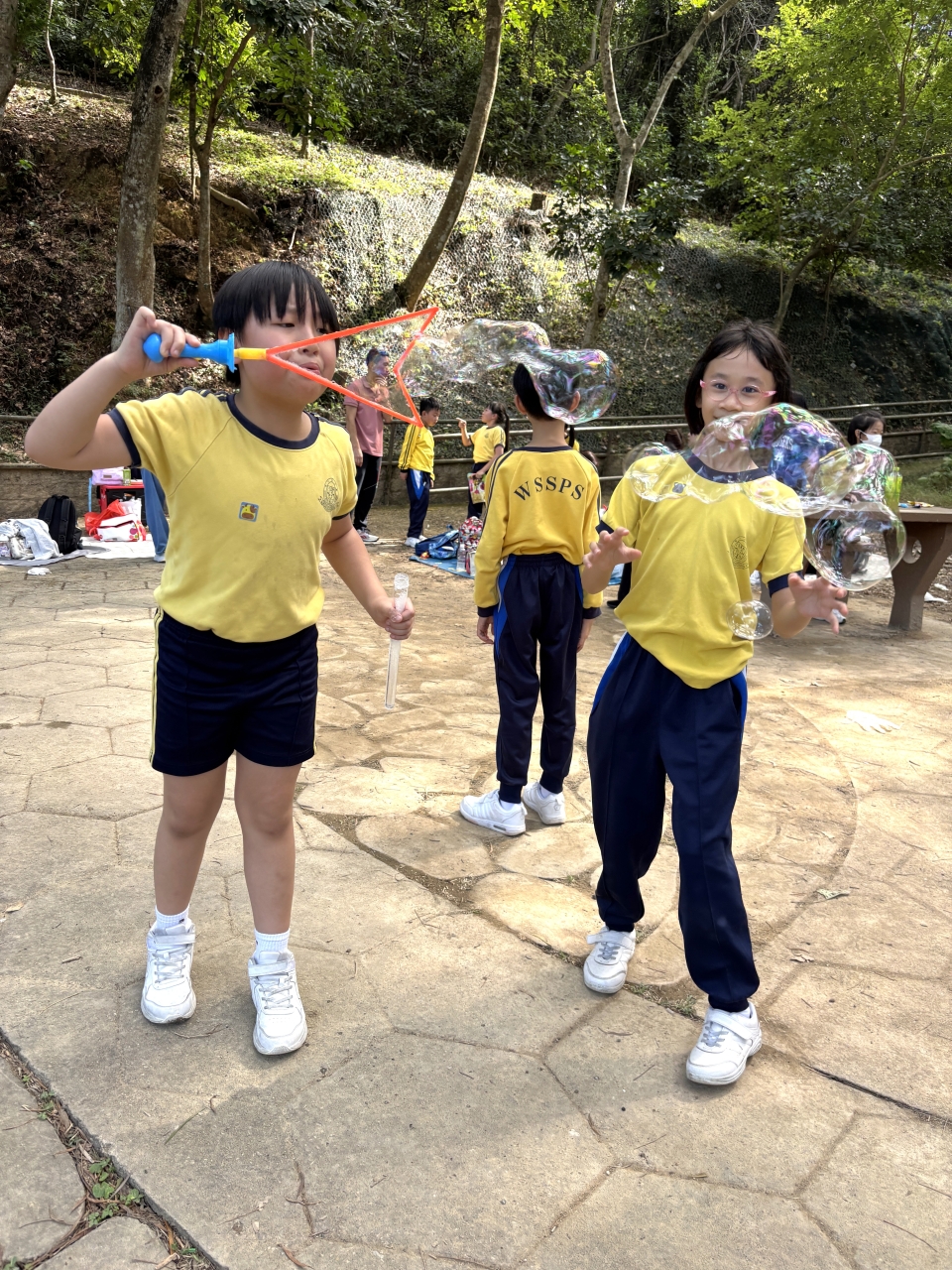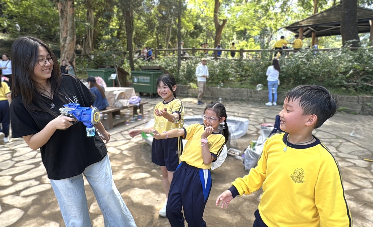 漫步自然教育徑、打球、捉迷藏、吹泡泡...每個人都找到了自己的樂趣