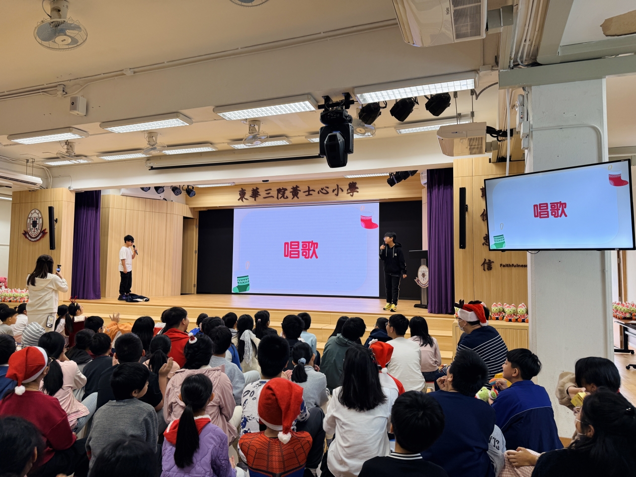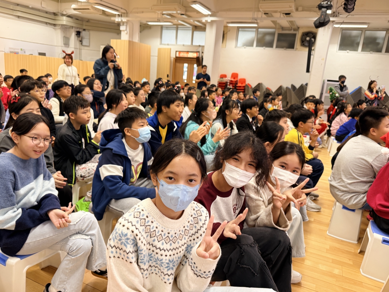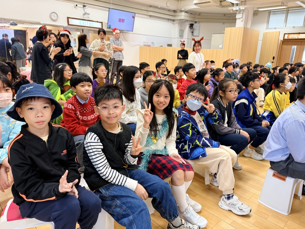 課室化身歡樂小派對!同學與老師一起玩互動遊戲,合作無間,歡呼不斷;彼此分享手作美食,更準備了精心包裝的小禮物互相交換,蘊藏著真摯祝福。
