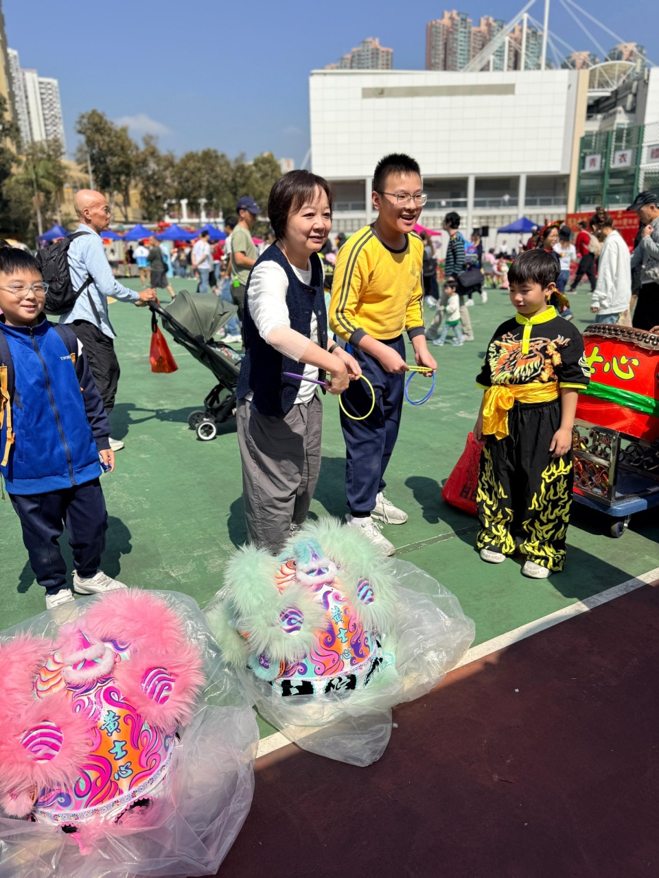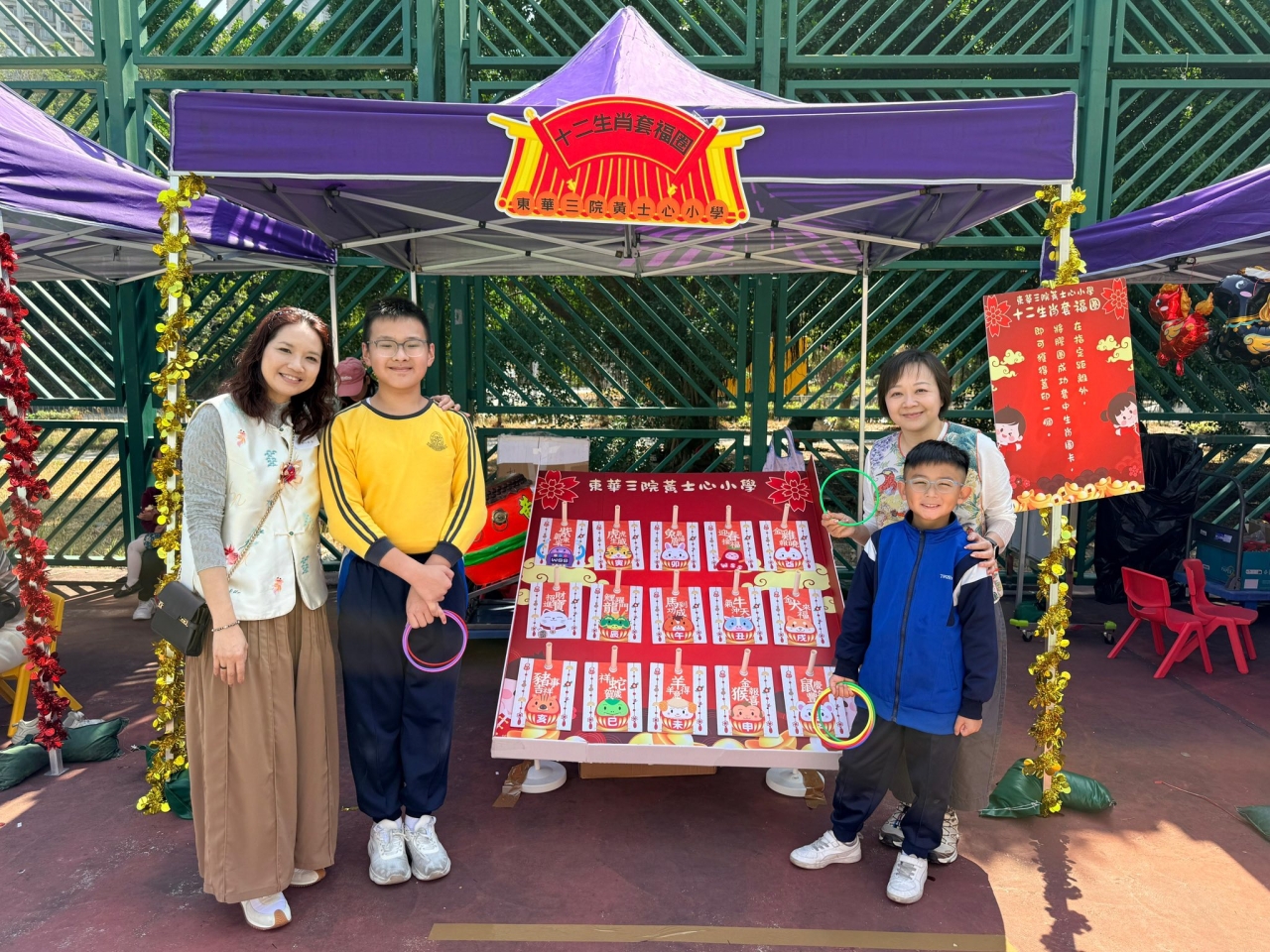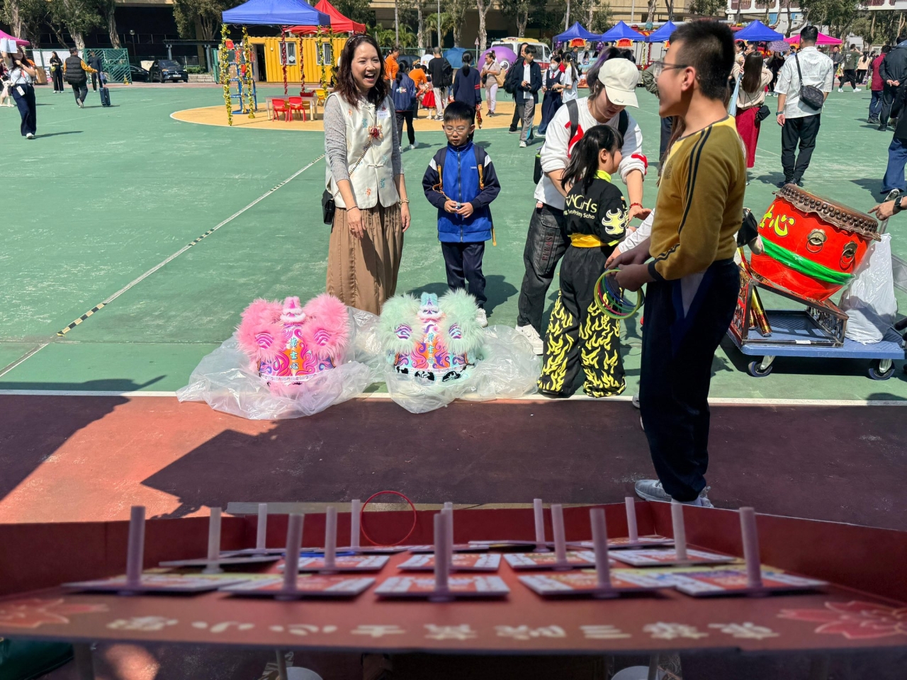 同學主持攤位遊戲,小朋友拋圈、集印仔