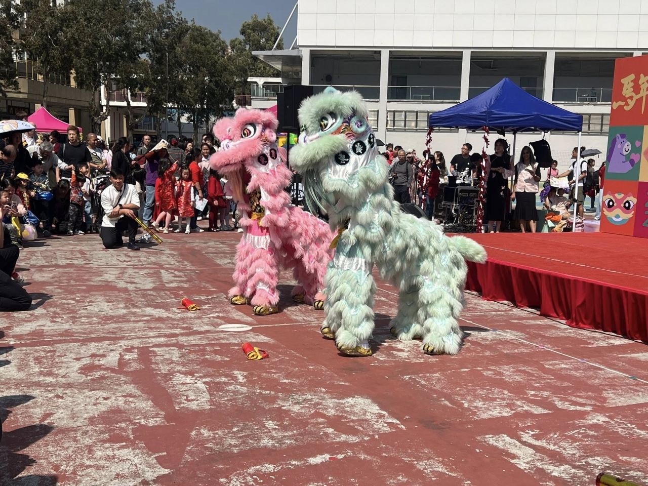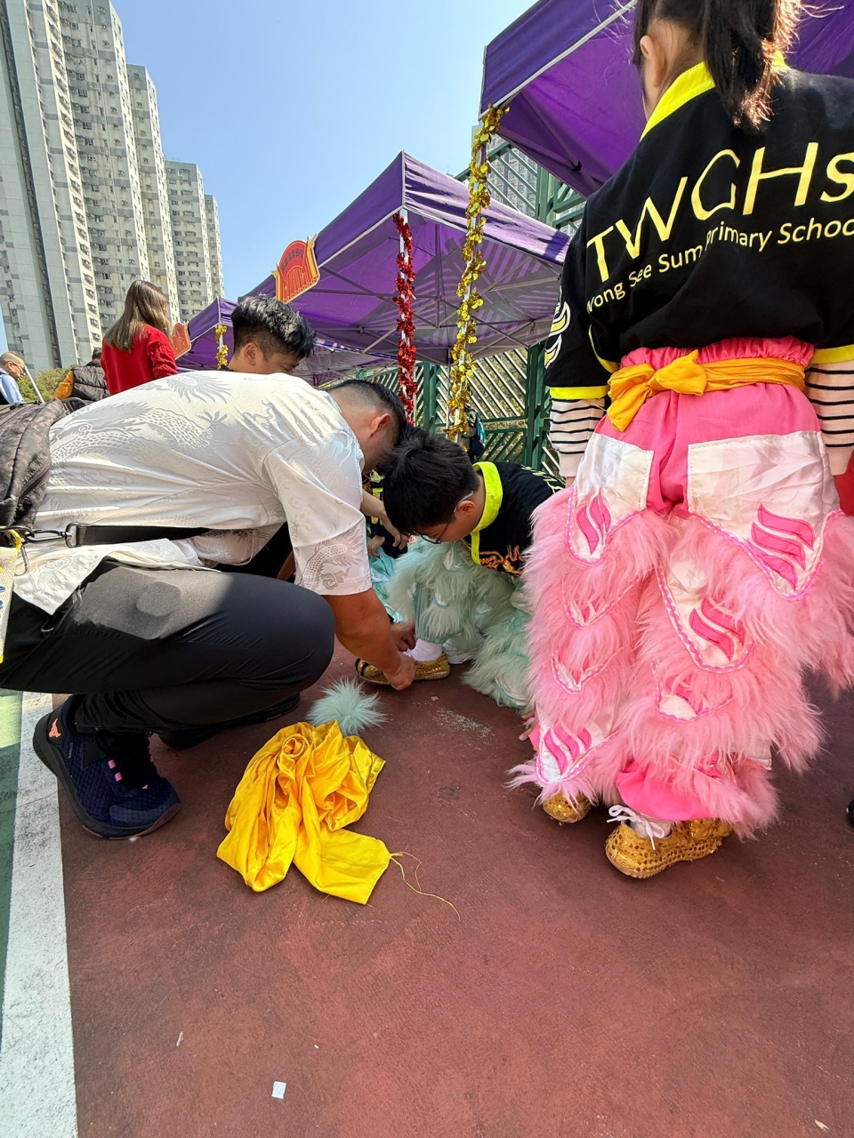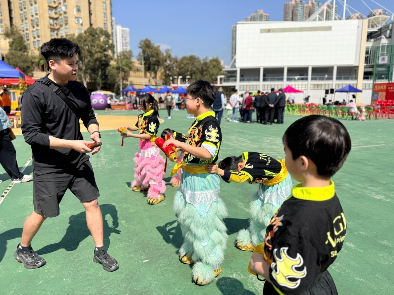 同學主持攤位遊戲,小朋友拋圈、集印仔