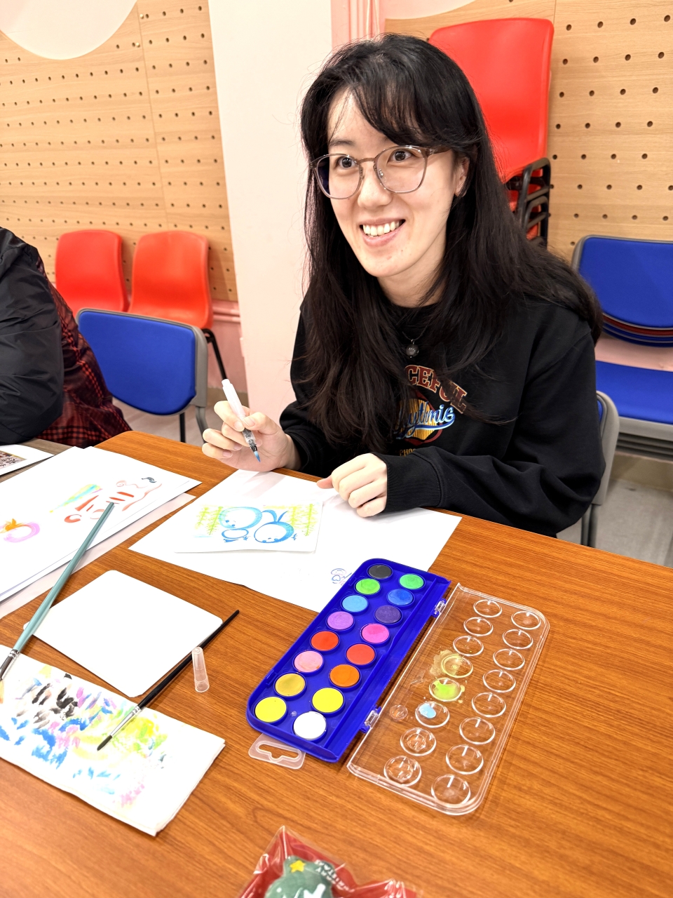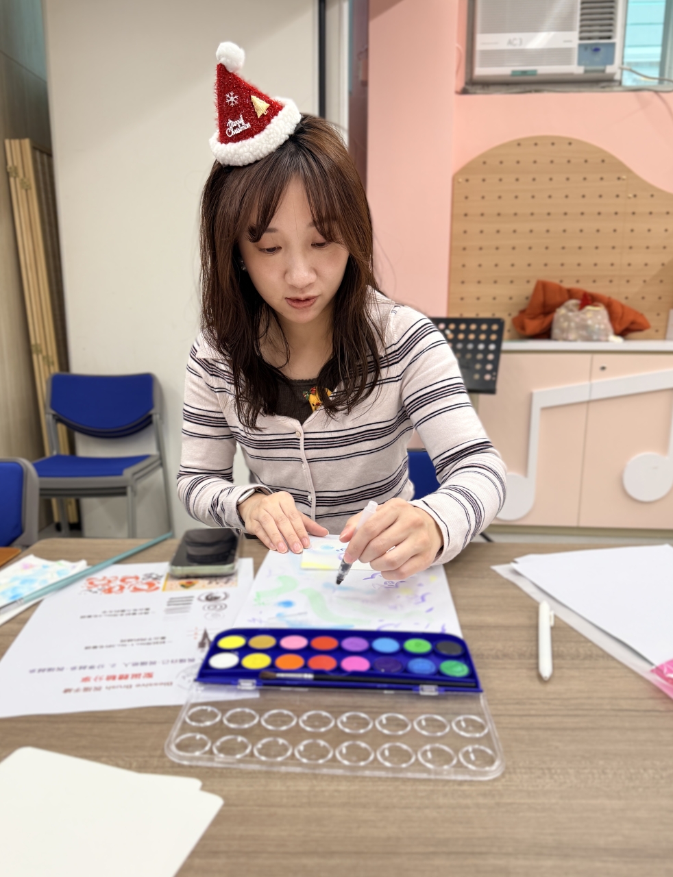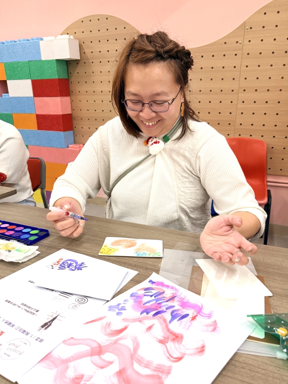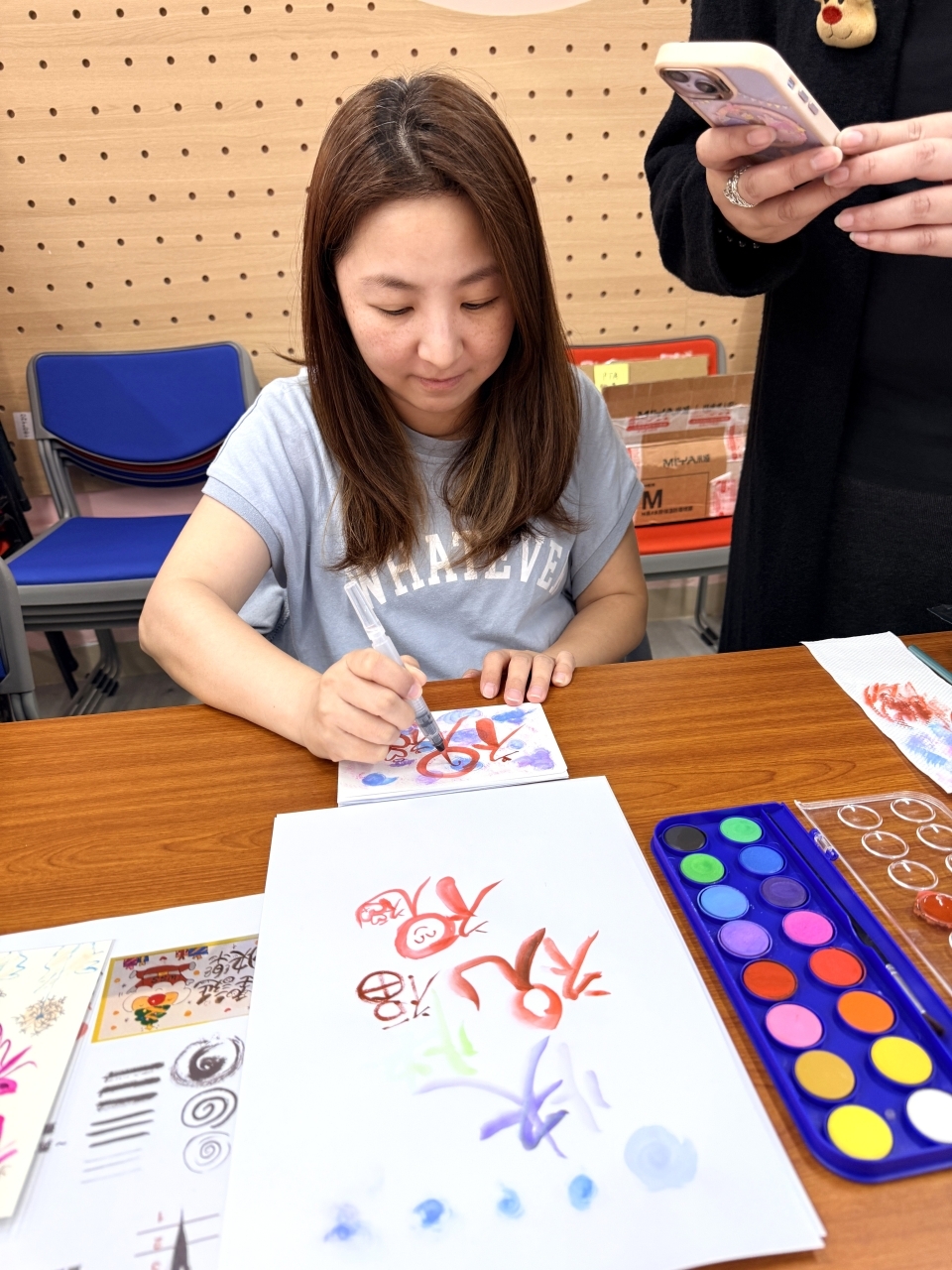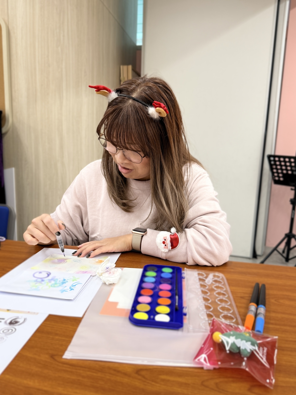 許多參與的老師、家長和我都是初次接觸這樣的繪畫,但在"家長導師"的耐心示範與心得分享下,大家逐步勾勒出獨具心意的節日畫作,現場洋溢著專注而愉悅的創作氣氛。活動不僅讓參與者體驗到手繪的樂趣,更展現了家校之間互助共學的美好情誼。每一幅作品,都承載著節日的祝福與親手創作的溫度。