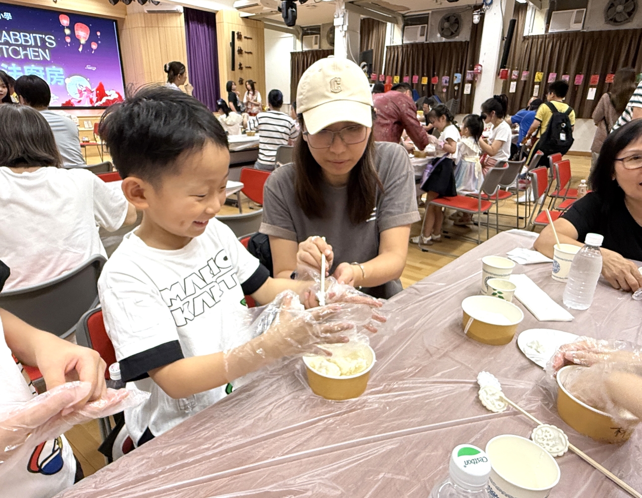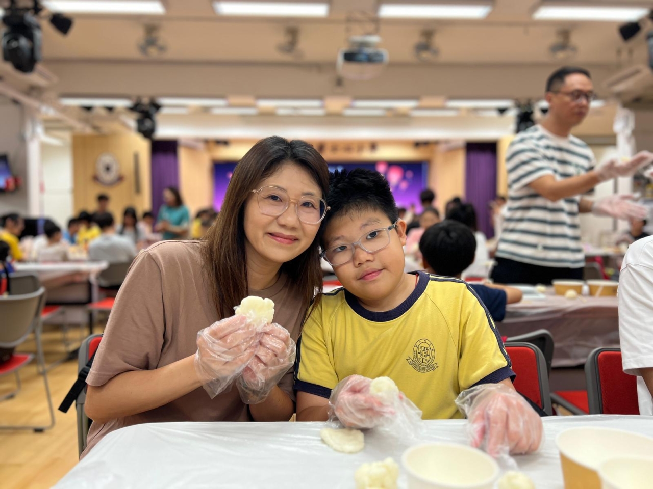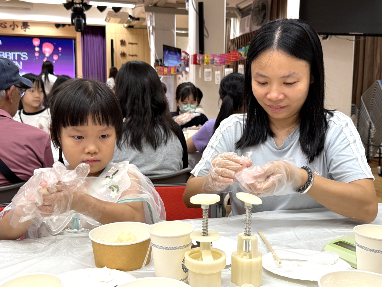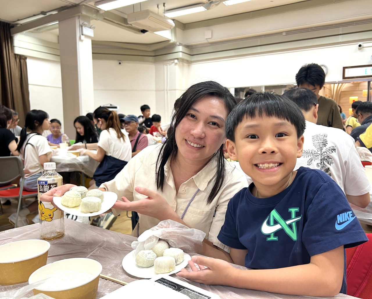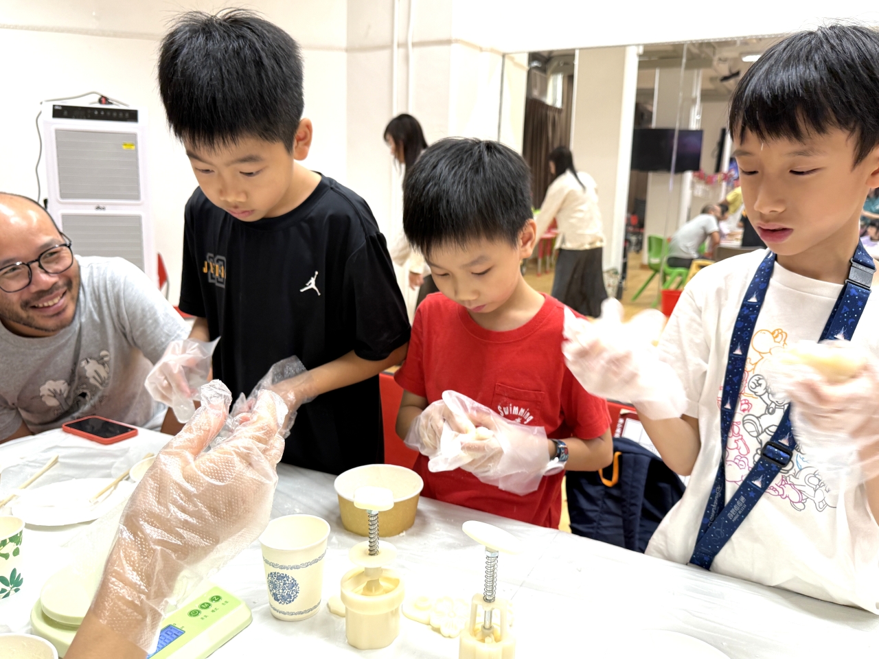 最受歡迎的絕對是親子製作冰皮月餅的環節!在家長義工耐心指導下,👨👩👧👦爸爸媽媽、爺爺奶奶和孩子一起動手,揉麵團、包餡料、壓模子,忙得好開心。一個個小巧可愛的月餅從模具裡「誕生」時,大人小孩的臉上洋溢自豪的笑臉,畫面真的非常動人!