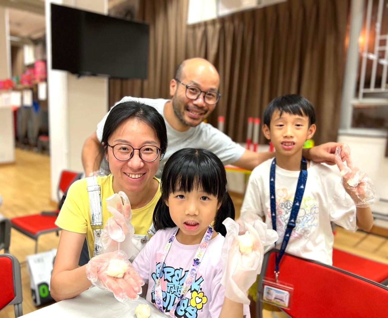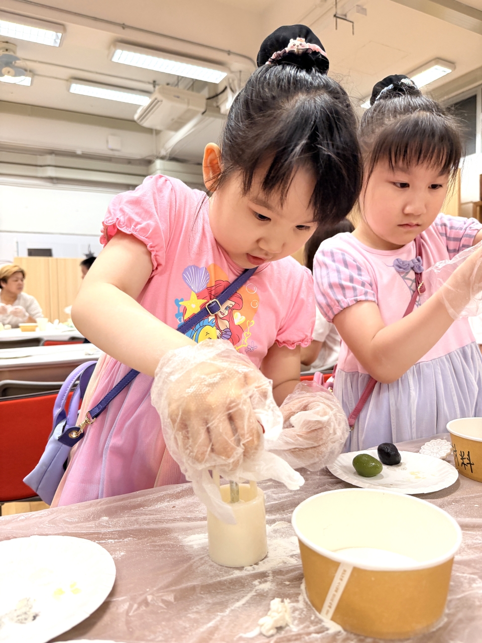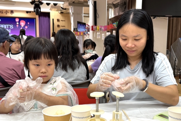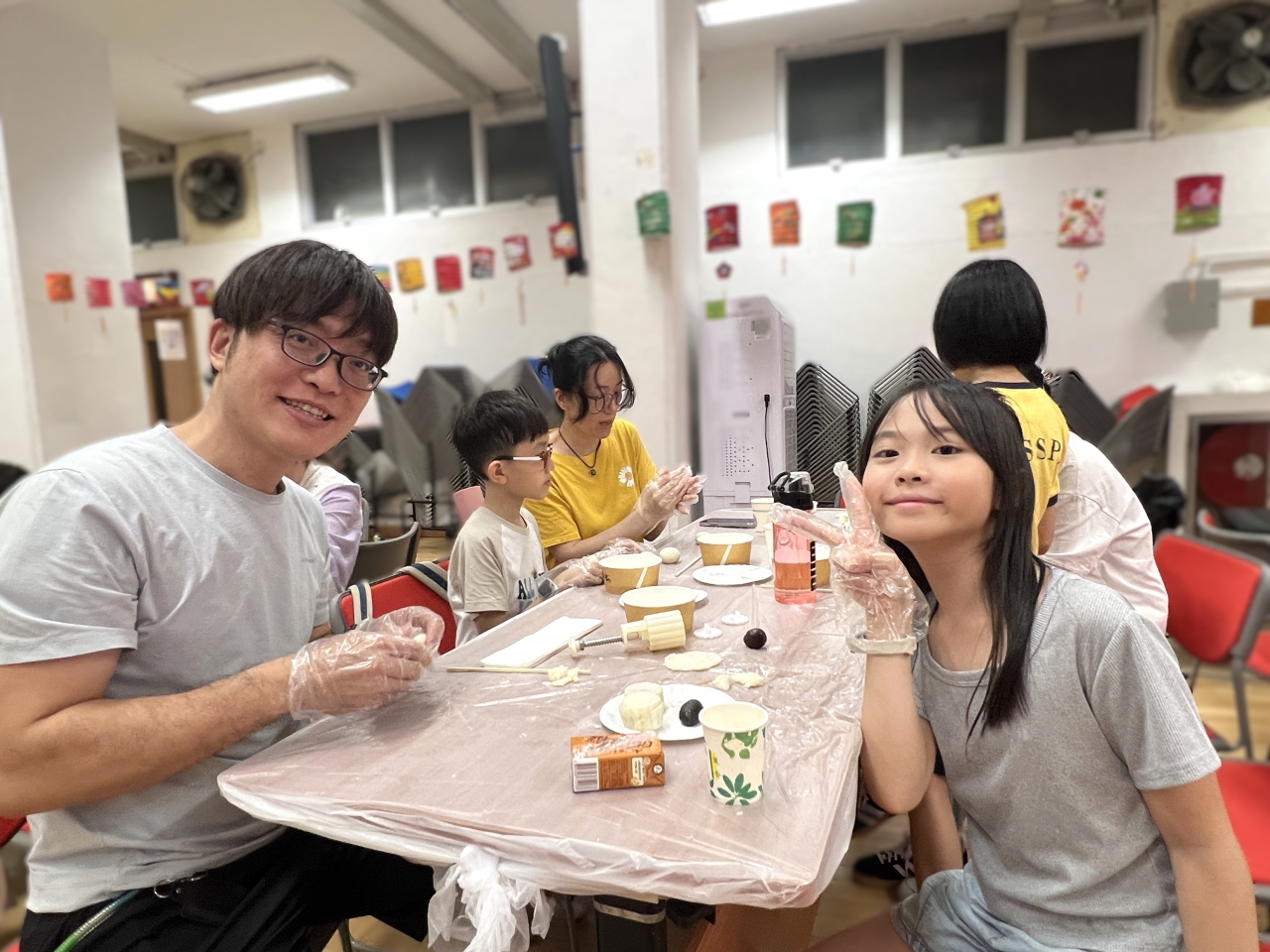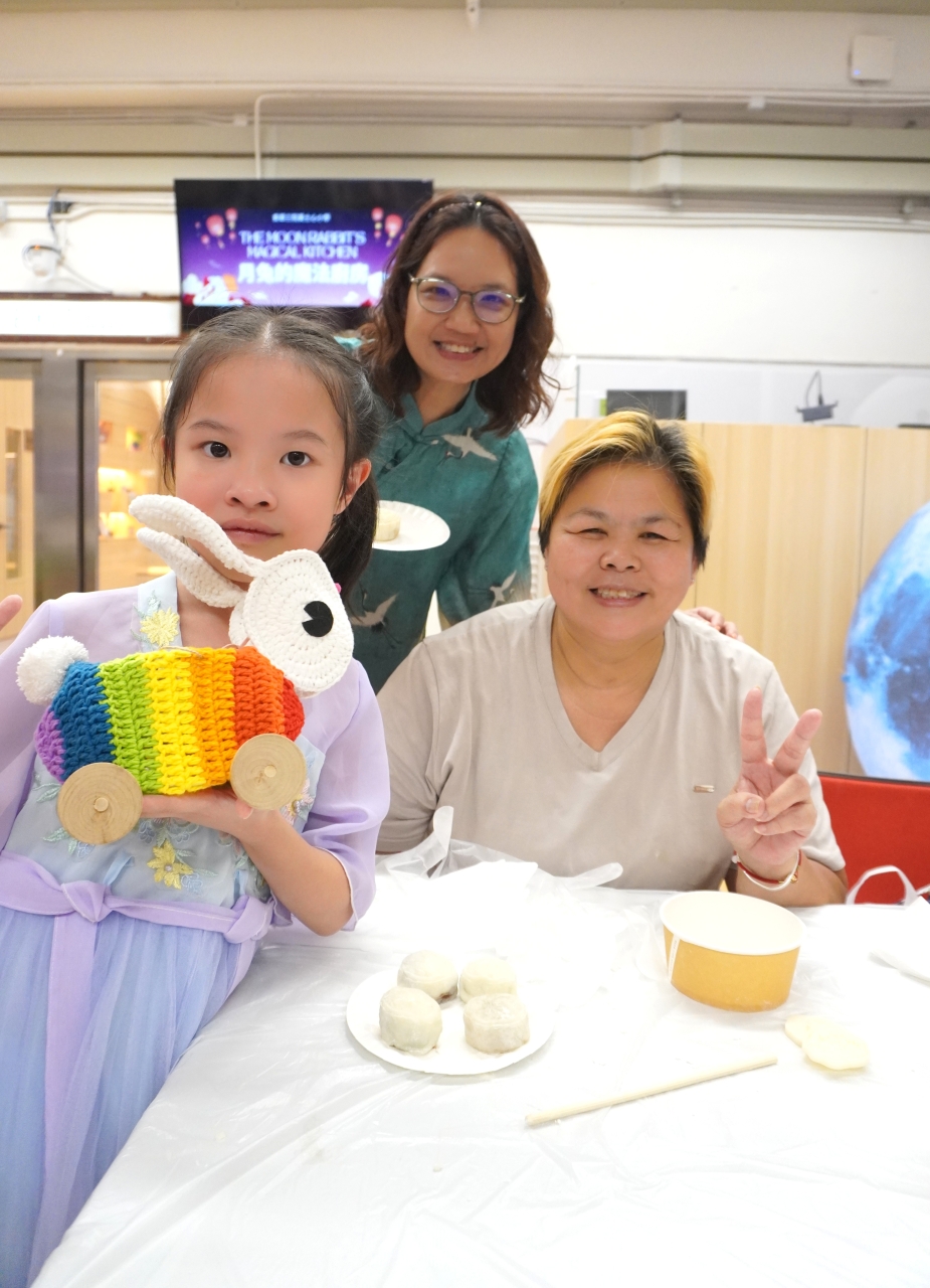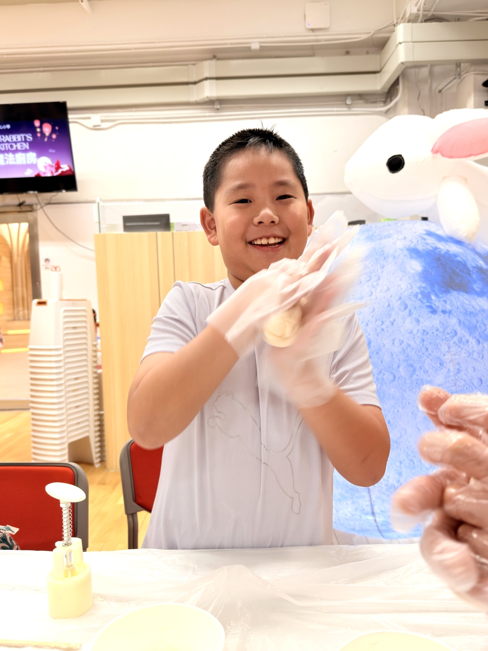 最受歡迎的絕對是親子製作冰皮月餅的環節!在家長義工耐心指導下,👨👩👧👦爸爸媽媽、爺爺奶奶和孩子一起動手,揉麵團、包餡料、壓模子,忙得好開心。一個個小巧可愛的月餅從模具裡「誕生」時,大人小孩的臉上洋溢自豪的笑臉,畫面真的非常動人!