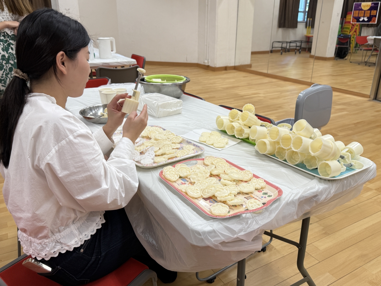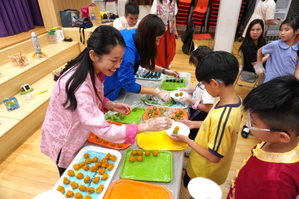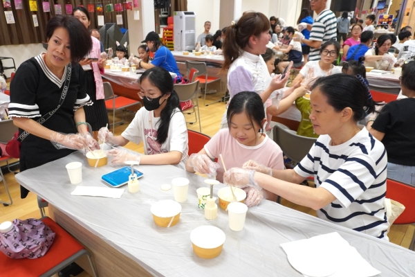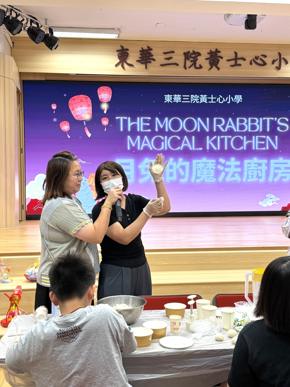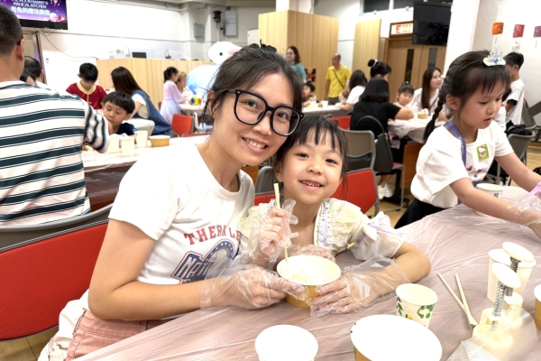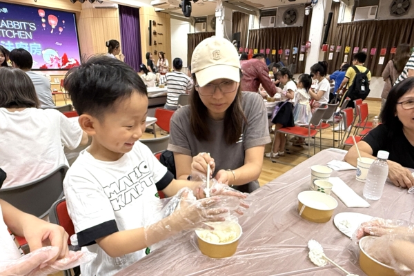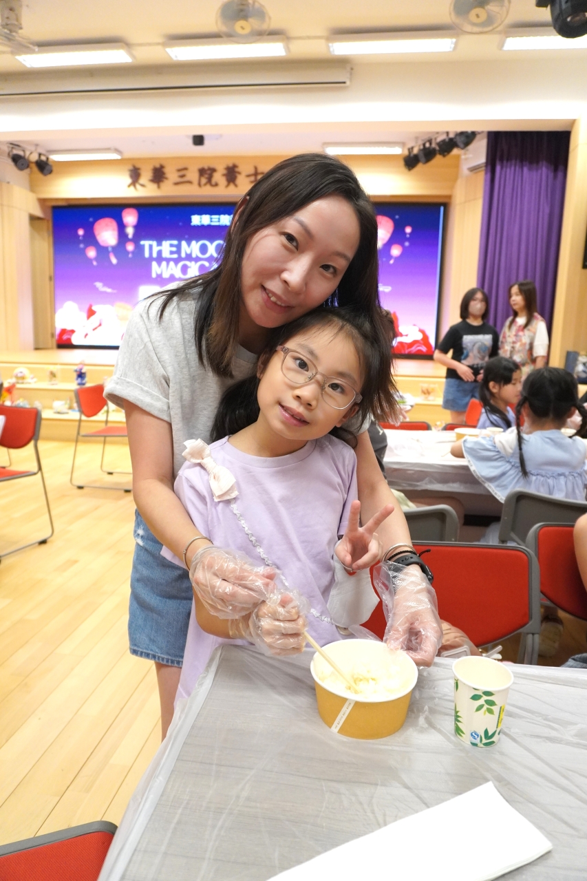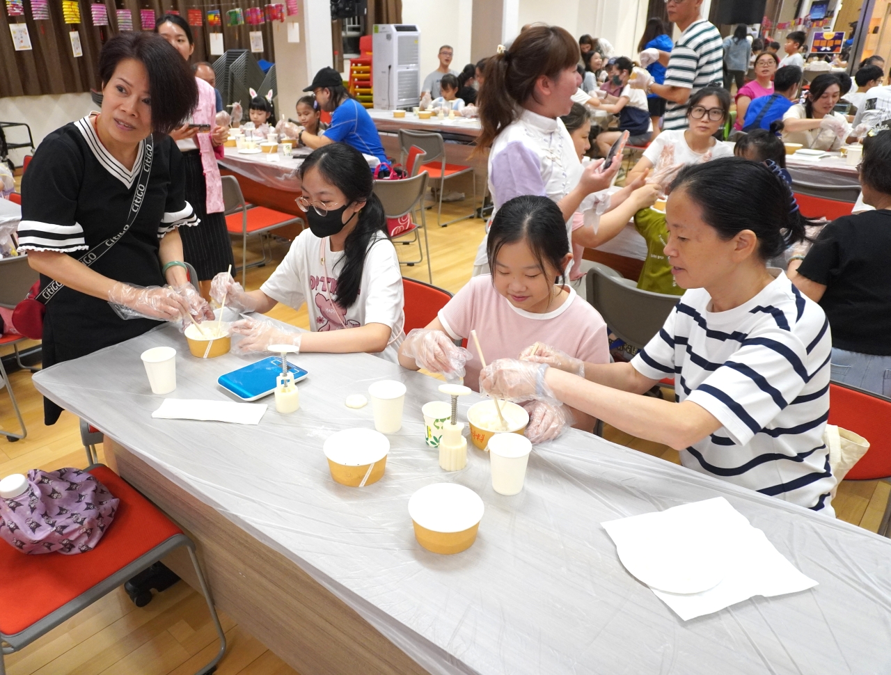 最受歡迎的絕對是親子製作冰皮月餅的環節!在家長義工耐心指導下,👨👩👧👦爸爸媽媽、爺爺奶奶和孩子一起動手,揉麵團、包餡料、壓模子,忙得好開心。一個個小巧可愛的月餅從模具裡「誕生」時,大人小孩的臉上洋溢自豪的笑臉,畫面真的非常動人!
