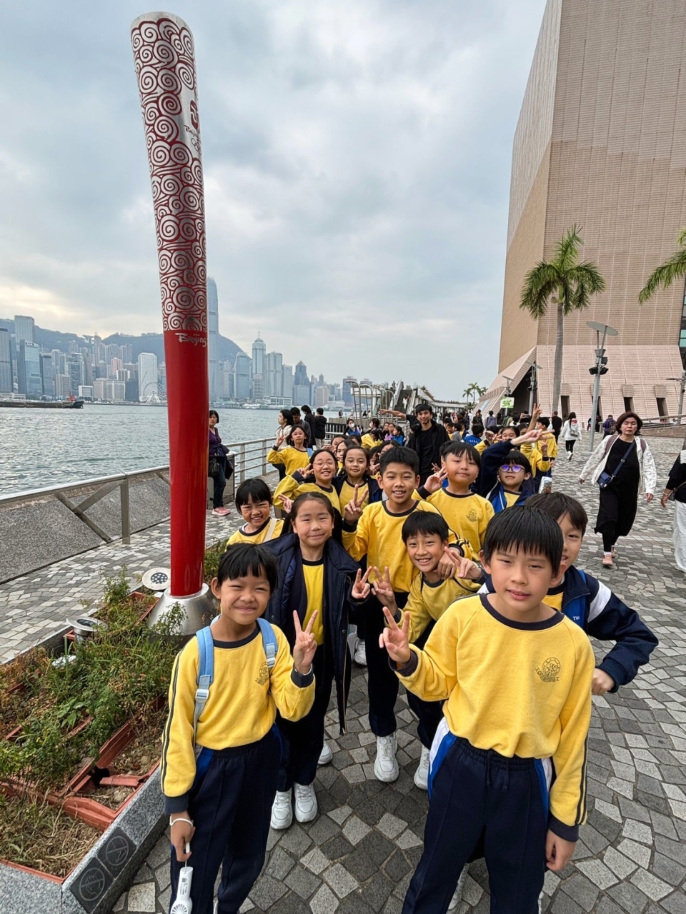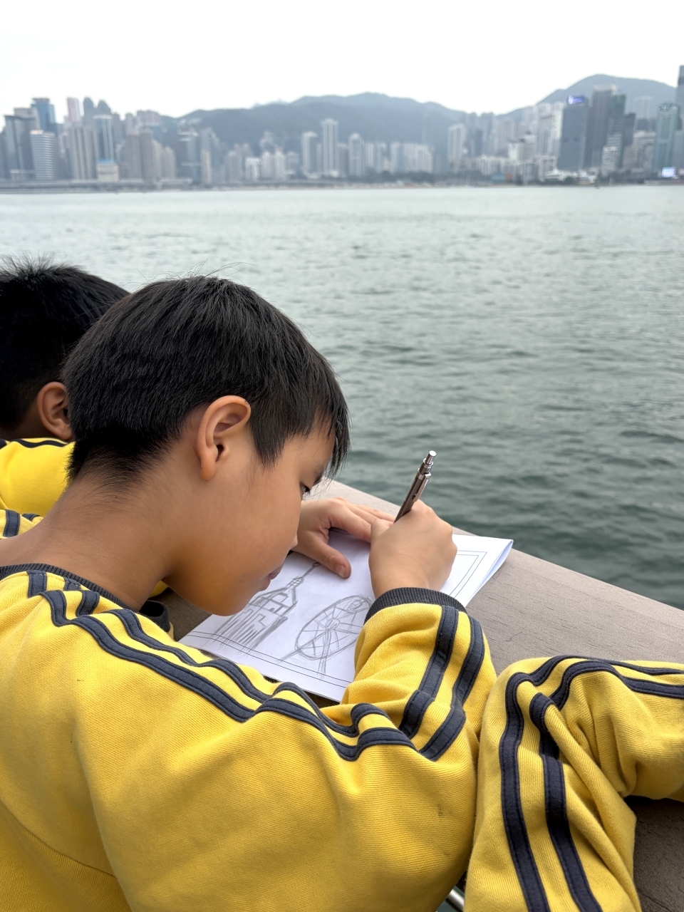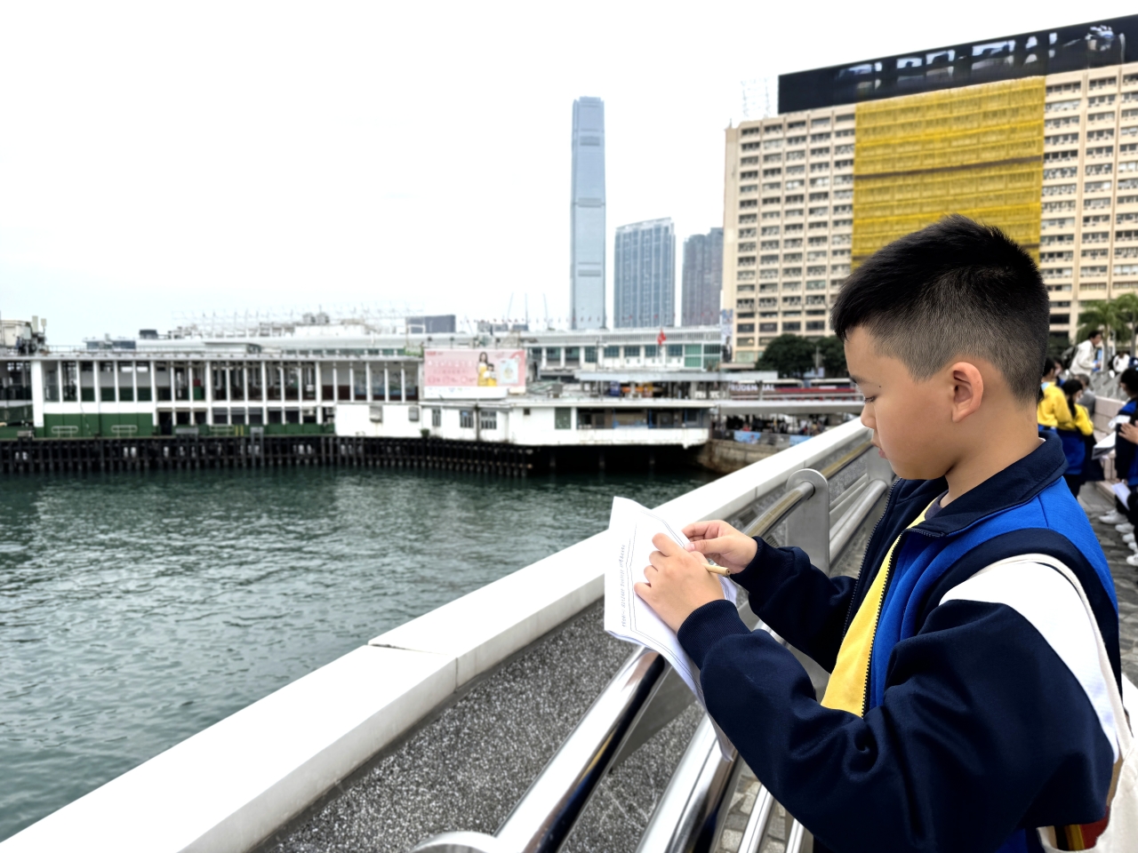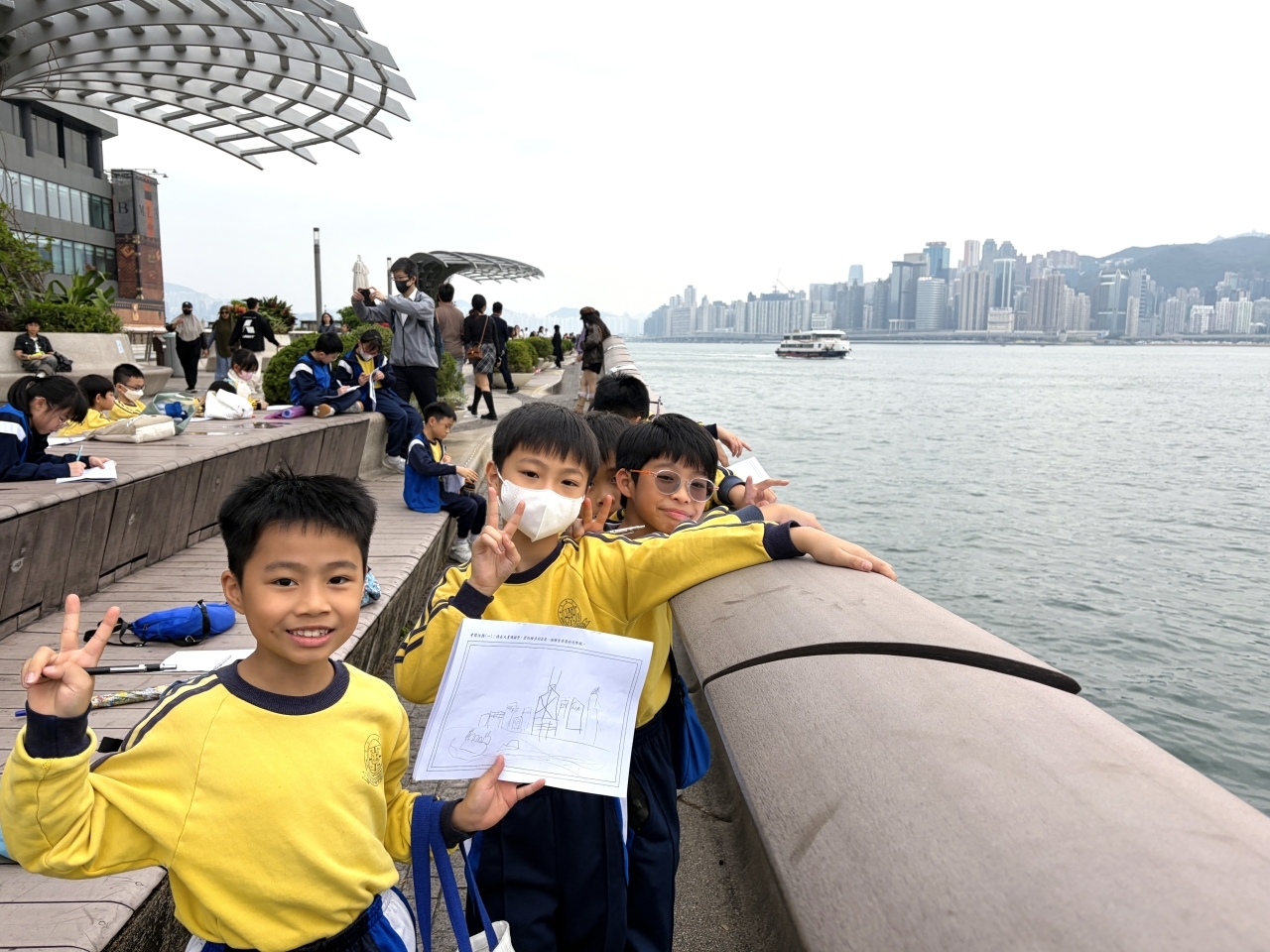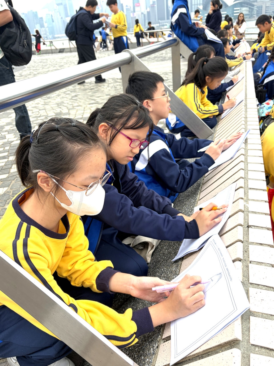 為推動全方位學習,老師帶領學生走出課室,親赴尖沙咀海旁進行實地考察。同學們在維港瑰麗景色與摩天大樓的環抱中,親身觀察、尋找並描繪香港享譽世界的標誌性地標,從中認識這座城市的脈動與魅力